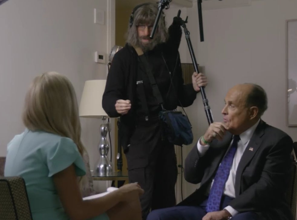 In what has become the film's most renowned scene, Rudy Giuliani is shown in what appears to be a compromising position after taking Tutar to his hotel bedroom “for a drink” after she interviews him. He believes she is a conservative TV host.