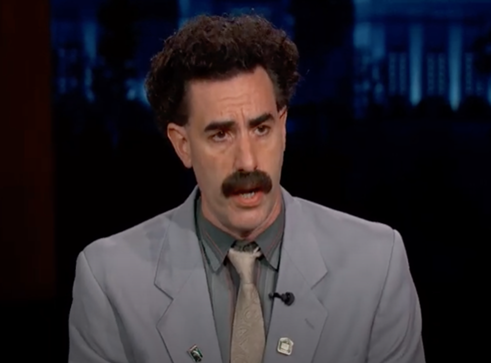 Borat dropped in for an interview on Jimmy Kimmel’s US chat show – but the host was unable to ask a single question.