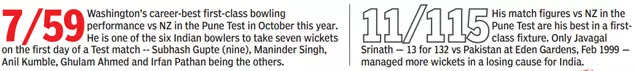 Is it enough for him to pip Ashwin and Jadeja? Mhambrey feels his batting credentials alongside his bowling ability on bouncy pitches have convinced the team management. "His batting fundamentals are very strong. He plays pace and bounce very well. I would say he can bat in the topseven. And his style of bowling can be a handful on faster, bouncier tracks. He is someone who could even bowl in powerplays in T20s in his early days," Mhambrey said.