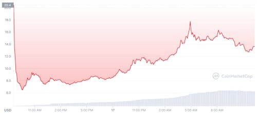 In the day since, the price of ApeCoin has fluctuated with great volatility, as all cryptocurrency is wont to do. Its latest peak — at approximately 5 a.m. ET — hit about $17.75 before dropping again to its current value of about $13.