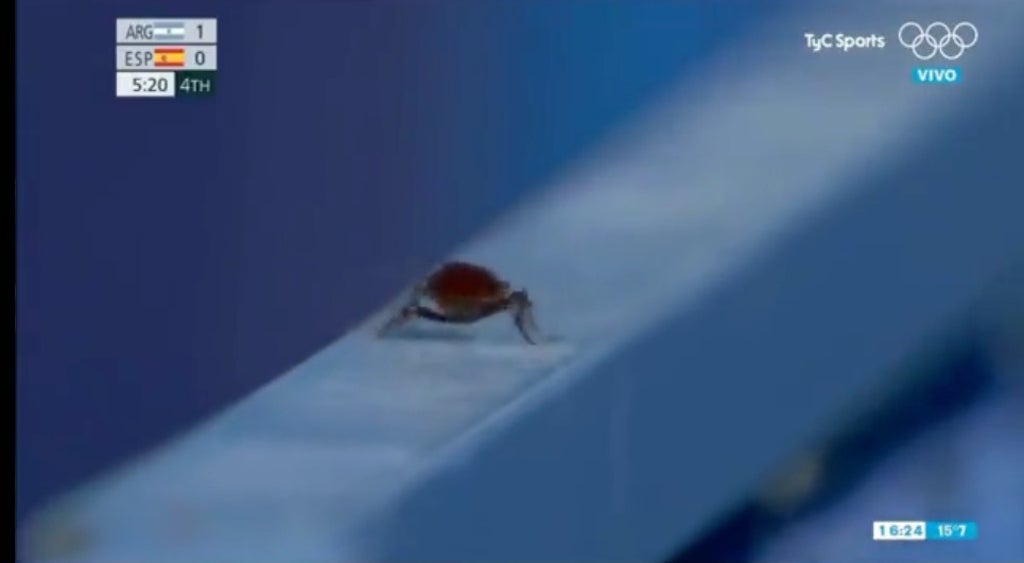 The bizarre incident happened during the women’s match between Spain and Argentina, when Argentine sports channel TyC showed a close-up shot of the roach as a replay was taking place.