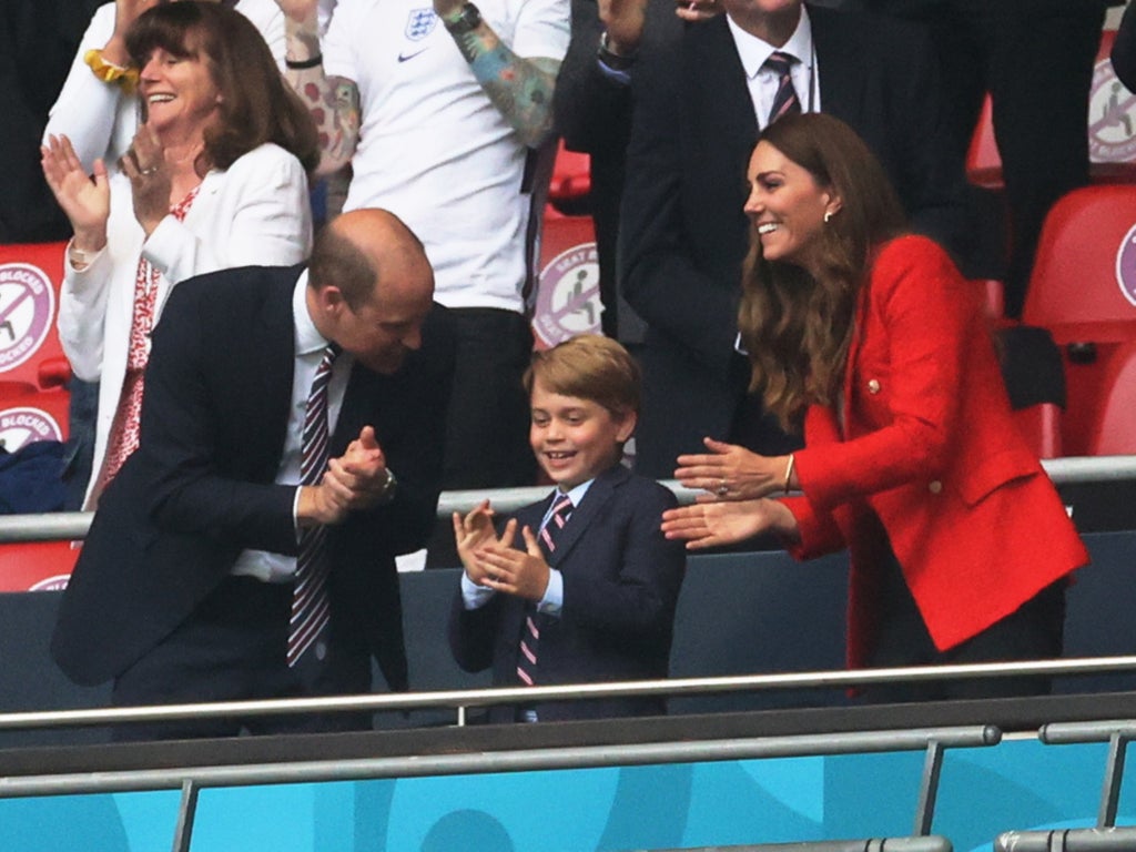 Joining the prime minister in formal attire for the game was seven-year-old Prince George, who in the stands at Wembley alongside his parents, Prince William and Kate Middleton, wearing a navy blue suit and striped tie.