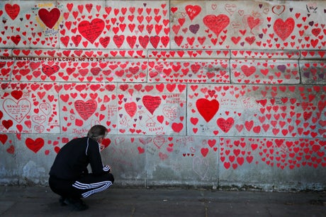 The memorial in central London, opposite Parliament, has tens of thousands of hand drawn hearts — each to represent a victim of Covid-19 — and in recent weeks politicians and religious leaders have made visits.