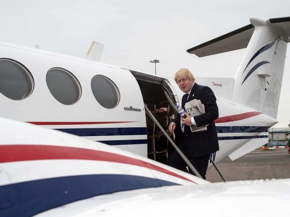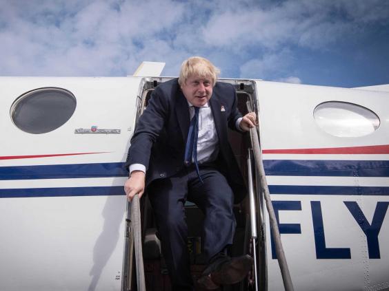 And after jumping in a light aircraft, Mr Johnson was met by a group of supporters on the tarmac at East Midlands Airport.