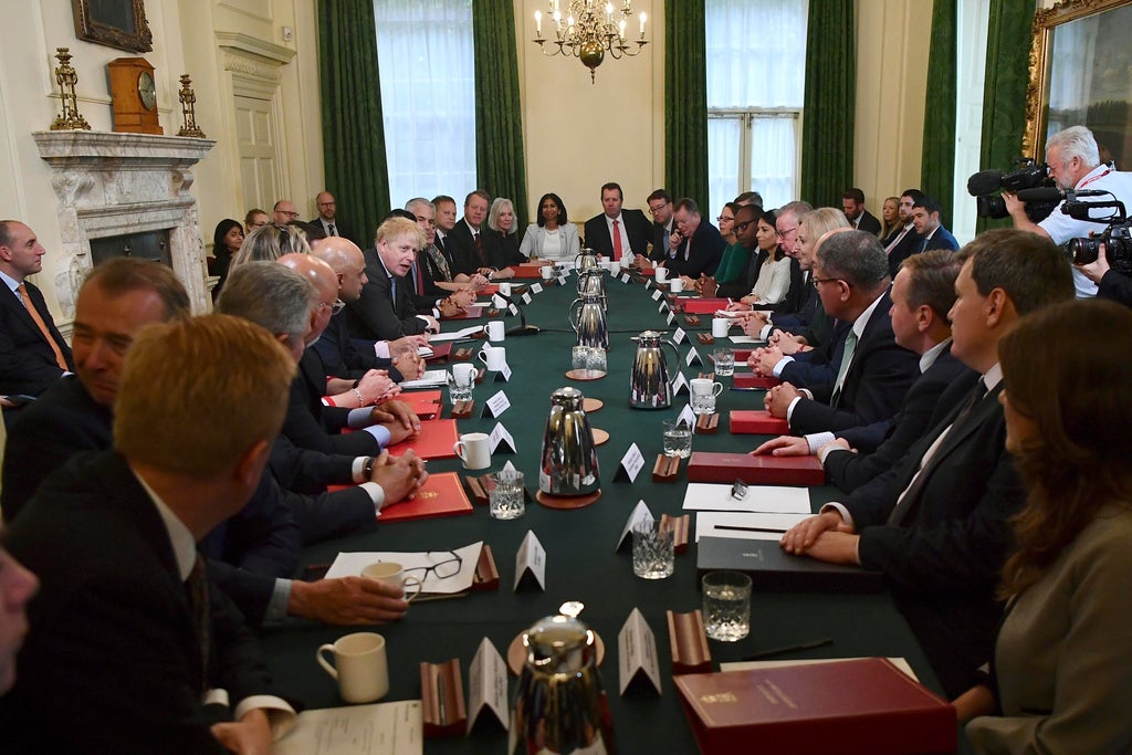 Dominic Raab, demoted to justice secretary – but handed the consolation title of deputy prime minister – sat opposite Mr Johnson, alongside Liz Truss, his replacement as foreign secretary, and Michael Gove, the new housing secretary.
