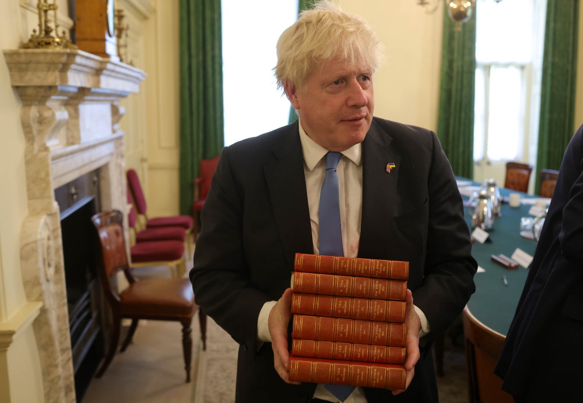 Boris Johnson was presented with a set of books by his hero Winston Churchill as a farewell present from ministerial colleagues as he chaired his final cabinet meeting today.