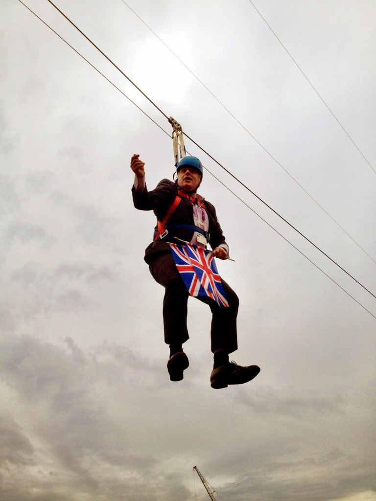 Even stuck dangling metres above London on a zip line during the Olympics, Mr Johnson "seemed to take the buffoon and run with it", according to those watching below.