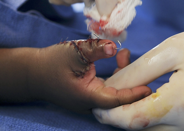 After the surgery, his hands were set in red casts _ a color chosen by his family. After his hands heal and the casts are removed, he will receive physical therapy and routine check-ups. Depending on how his hands grow, doctors may later decide he needs more surgery.