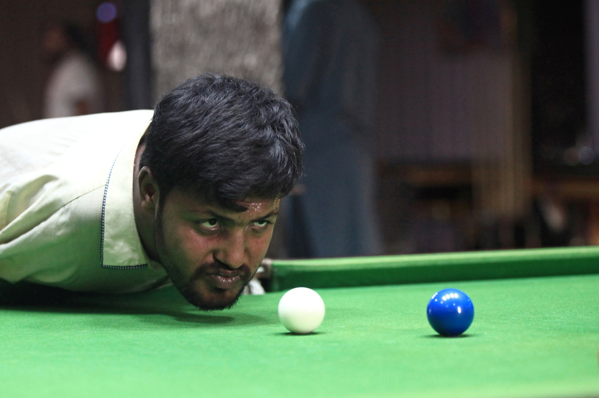 Muhammad Ikram, 32, takes aim, flexes his neck and strikes with his chin, sending the cue ball across the table and sinking his shot in a corner pocket. Born without arms, Ikram has nevertheless mastered the game of snooker.