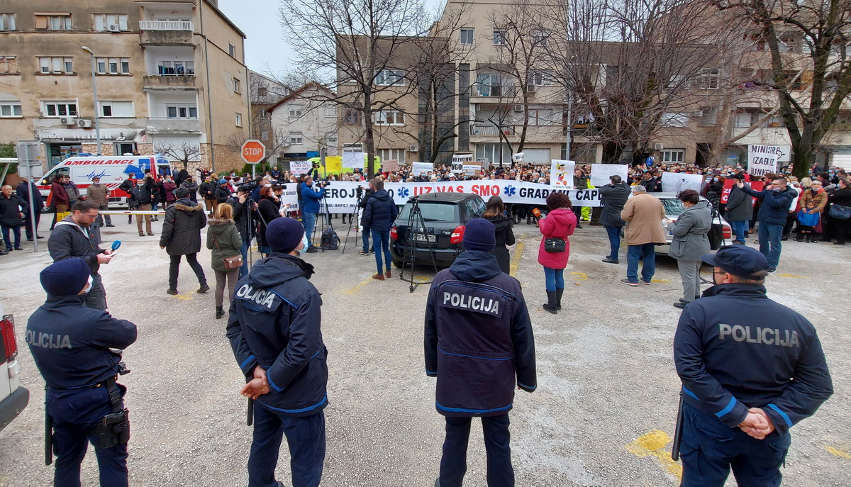 Hundreds of health workers took to the streets of the southern Bosnian town of Mostar on Monday in protest over a long-delayed collective bargaining deal, threatening a hunger strike amidst the COVID-19 pandemic.