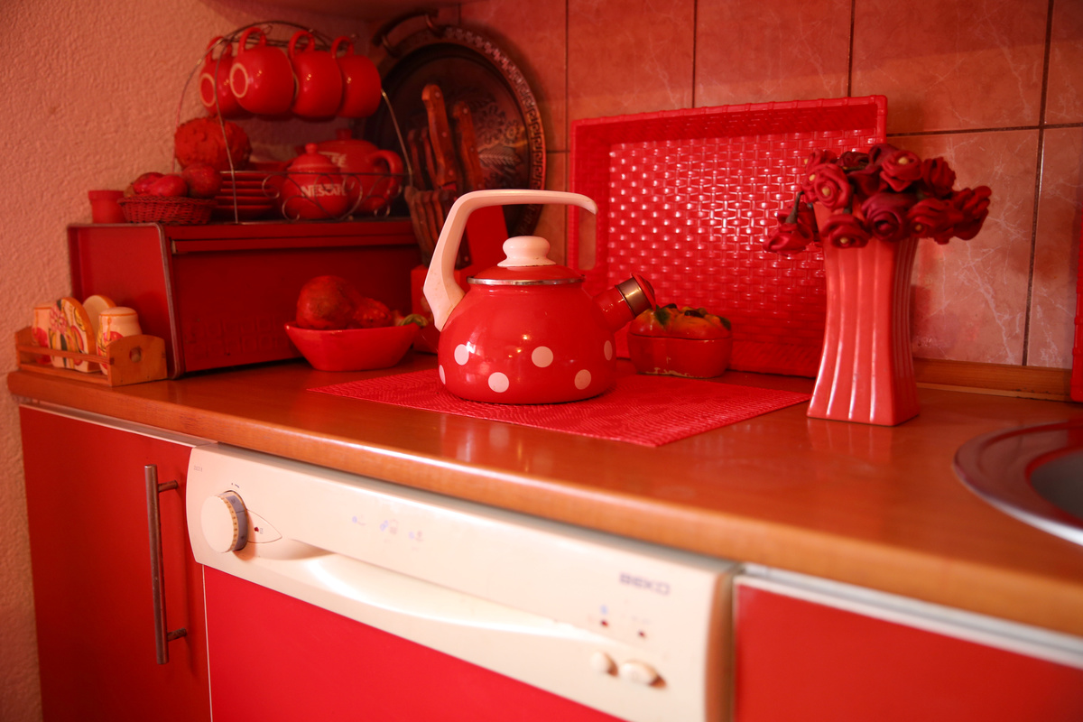 Zorica Rebernik, obsessed with the red color, stands in the kitchen inside her house in the village of Breze near Tuzla, Bosnia and Herzegovina October 16, 2019. REUTERS/Dado Ruvic