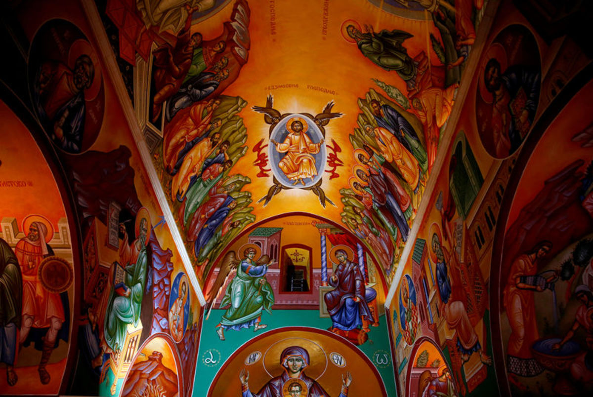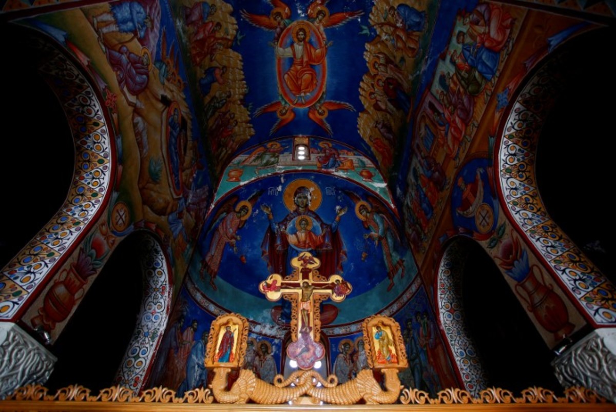 Decorative paintings adorn the walls and ceiling of Zitomislic Serbian Orthodox monastery in Zitomislici, Bosnia and Herzegovina, July 27, 2017. REUTERS/Dado Ruvic