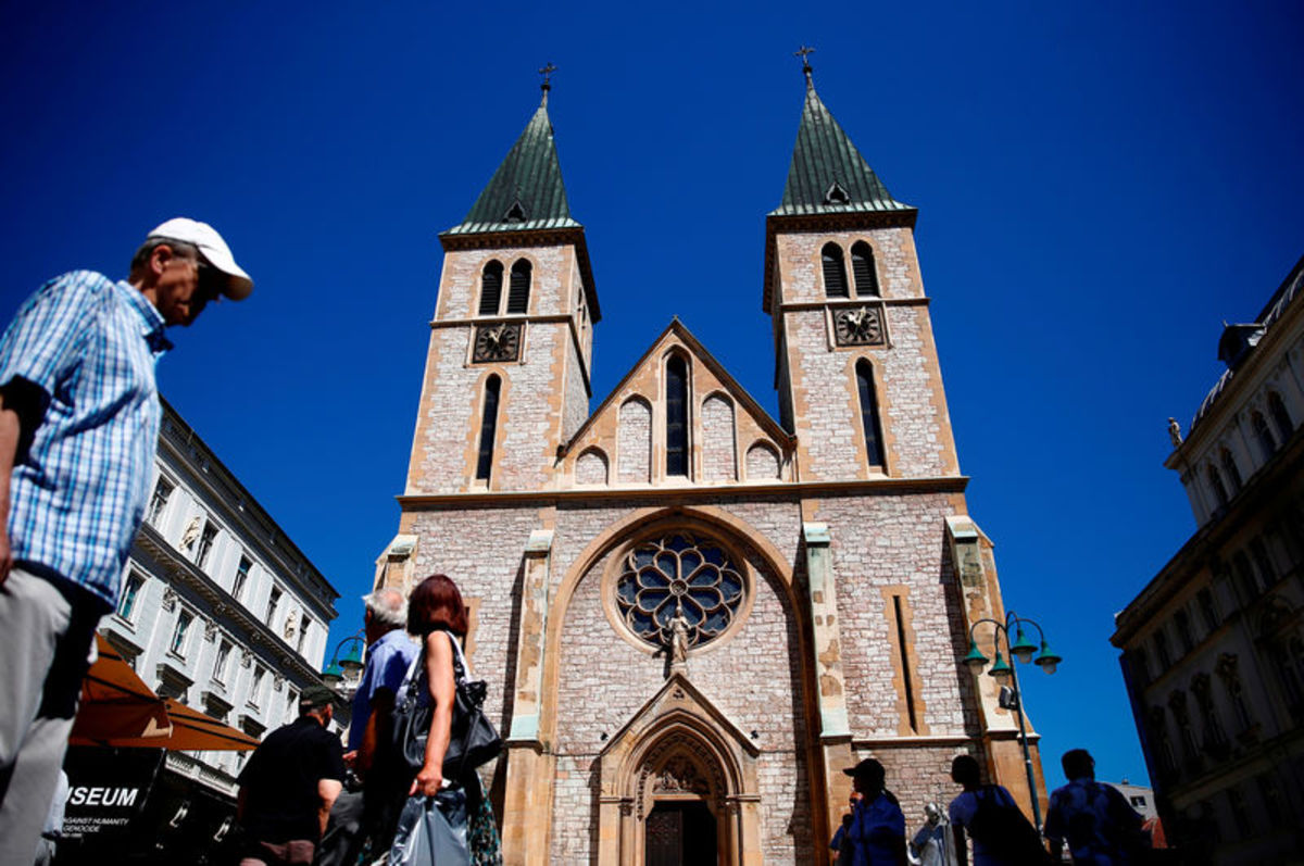 A statue stands in the interior of the Sacred Heart Cathedral in Sarajevo, Bosnia and Herzegovina, July 28, 2017. REUTERS/Dado RuvicShishman Ibrahim Pasha Mosque stands in Pocitelj, Bosnia and Herzegovina, July 27, 2017. REUTERS/Dado RuvicA chandelier hangs from the ceiling at Kraljeva Sutjeska Franciscan monastery in Kraljeva Sutjeska, Bosnia and Herzegovina, July 22, 2017. REUTERS/Dado RuvicPaintings cover the ceiling of Orthodox Temple Hercegovacka Gracanica in Trebinje, Bosnia and Herzegovina, July 27, 2017. REUTERS/Dado RuvicA copy of the Koran lies on a carpet at Sulejmanija Mosque in Travnik, Bosnia and Herzegovina, July 20, 2017. REUTERS/Dado RuvicDecorative paintwork adorns the walls and ceiling of the Sacred Heart Cathedral in Sarajevo, Bosnia and Herzegovina July 28, 2017. REUTERS/Dado RuvicA detail of a section of a wall is seen at Sulejmanija Mosque in Travnik, Bosnia and Herzegovina, July 20, 2017. REUTERS/Dado RuvicThe interior of the Old Synagogue is seen in Sarajevo, Bosnia and Herzegovina, August 2, 2017. REUTERS/Dado RuvicPeople walk past the Sacred Heart Cathedral in Sarajevo, Bosnia and Herzegovina, July 28, 2017. REUTERS/Dado RuvicSarajevo Ashkenazi Synagogue stands in Sarajevo, Bosnia and Herzegovina, July 28, 2017. REUTERS/Dado RuvicA crucifix is fixed to the roof of The Old Church in Vares, Bosnia and Herzegovina, July 22, 2017. REUTERS/Dado Ruvic Decorations adorn the walls of Sulejmanija Mosque in Travnik, Bosnia and Herzegovina, July 20, 2017. REUTERS/Dado RuvicA decorative wooden door is seen at Zitomislic Serbian Orthodox monastery in Zitomislici, Bosnia and Herzegovina, July 27, 2017. REUTERS/Dado RuvicAn entrance leads to an underground church and crypt in Jajce, Bosnia and Herzegovina, August 6, 2017. REUTERS/Dado Ruvic