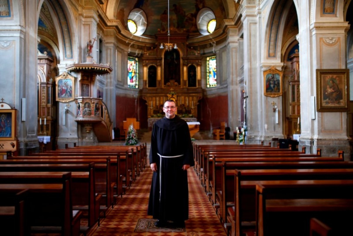 Friar Zeljko Brkic poses for a photograph inside Kraljeva Sutjeska Franciscan monastery in Kraljeva Sutjeska, Bosnia and Herzegovina, July 22, 2017. REUTERS/Dado Ruvic