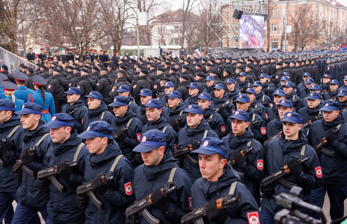 Crowds of onlookers and those marching waved Serb red, blue and white flags. The members of a special police unit sang songs referring to the Serb Republic as the state of Christian heritage.