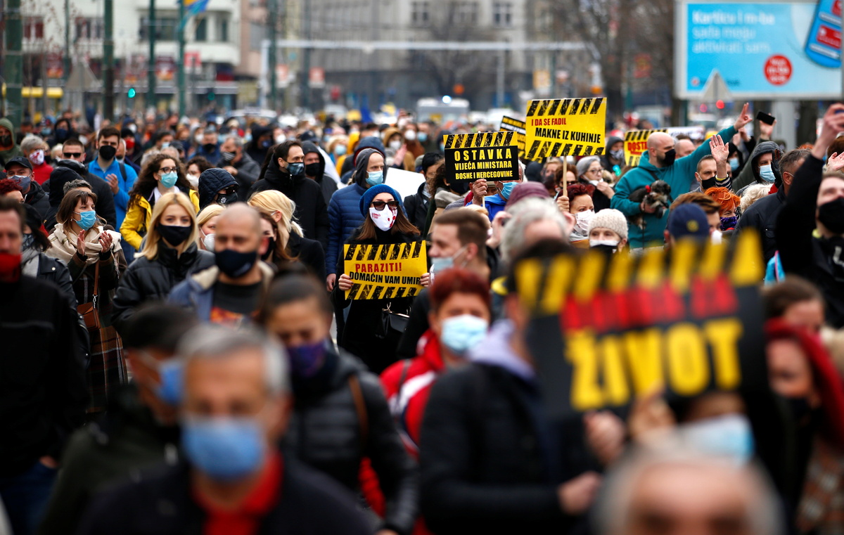 Hundreds of Bosnians staged a protest in the capital Sarajevo on Tuesday, demanding the resignations of top government officials over their handling of the coronavirus pandemic and failure to launch a nationwide vaccination programme.