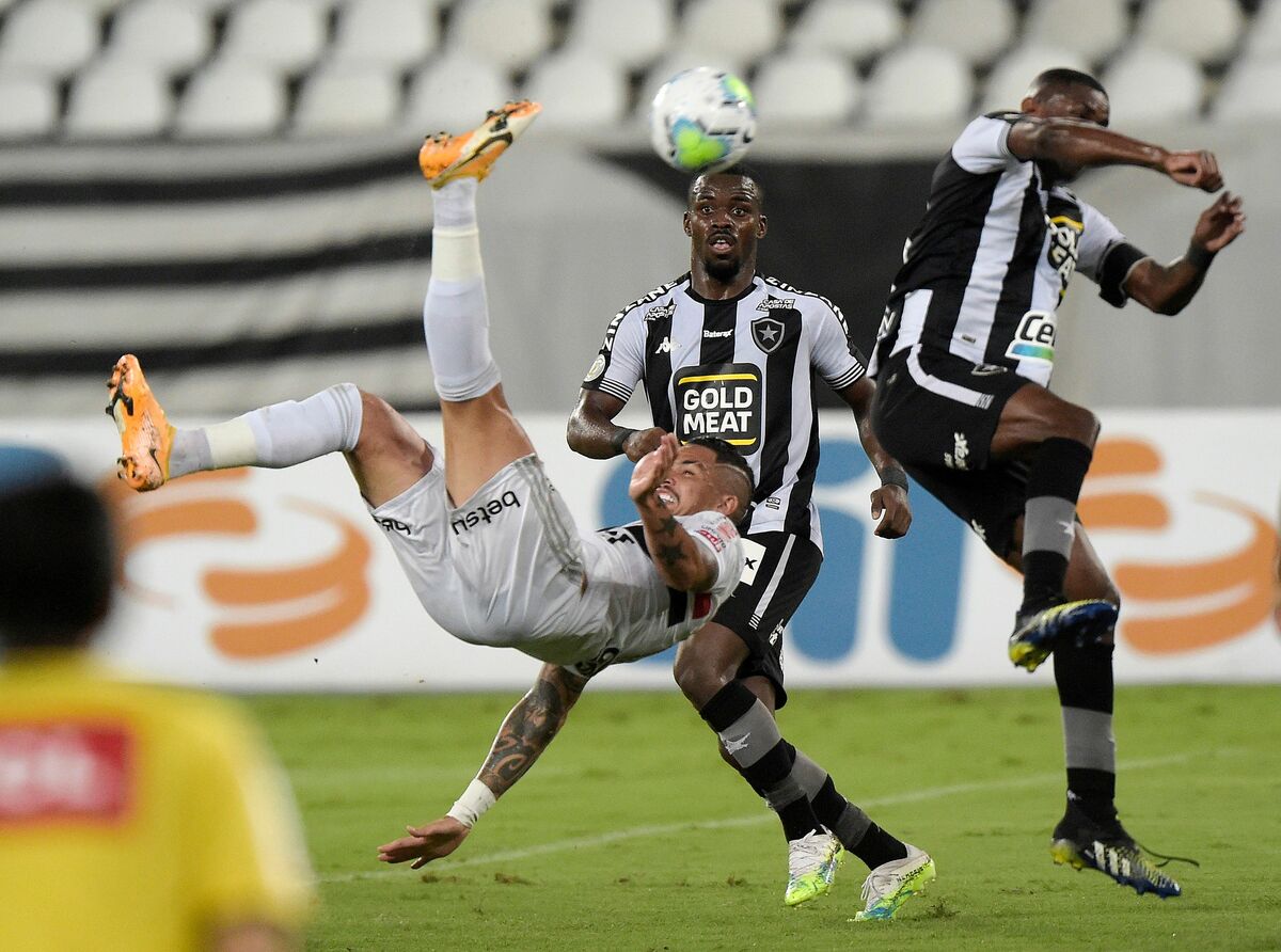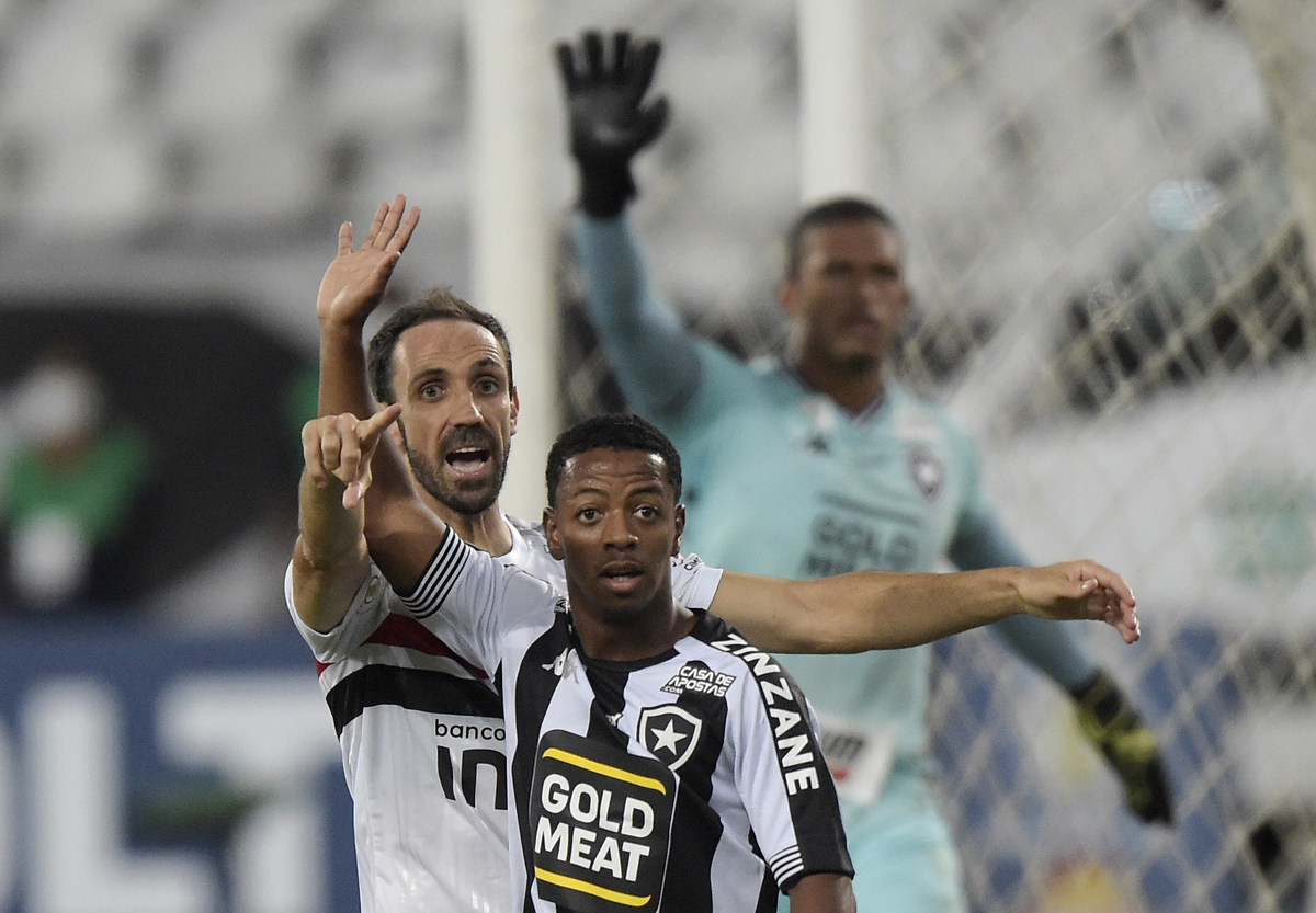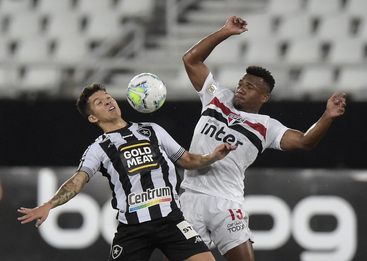 Soccer Football - Brasileiro Championship - Botafogo v Sao Paulo - Estadio Nilton Santos, Rio de Janeiro, Brazil - February 22, 2021 Sao Paulo's Luan in action with Botafogo's Bruno Nazario REUTERS/Alexandre LoureiroSoccer Football - Brasileiro Championship - Botafogo v Sao Paulo - Estadio Nilton Santos, Rio de Janeiro, Brazil - February 22, 2021 Sao Paulo's Juanfran reacts during the match REUTERS/Alexandre LoureiroSoccer Football - Brasileiro Championship - Botafogo v Sao Paulo - Estadio Nilton Santos, Rio de Janeiro, Brazil - February 22, 2021 Sao Paulo's Luciano in action REUTERS/Alexandre Loureiro