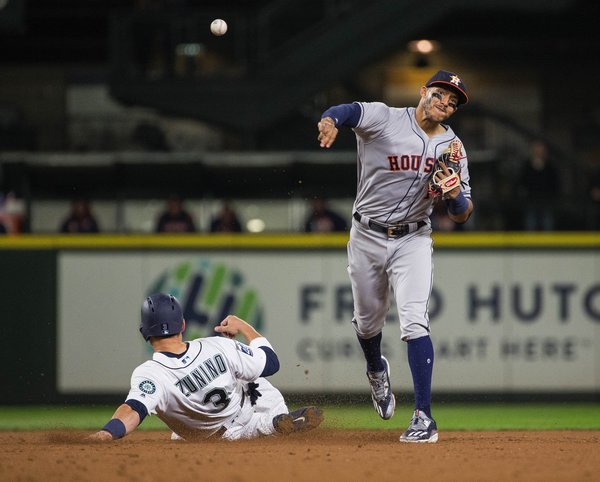SEATTLE_It all turned on what looked like a rather harmless flare to shallow right field. Sixth inning, two outs, bases loaded_and Astros pinch-hitter Evan Gattis floated a fly ball to right field.