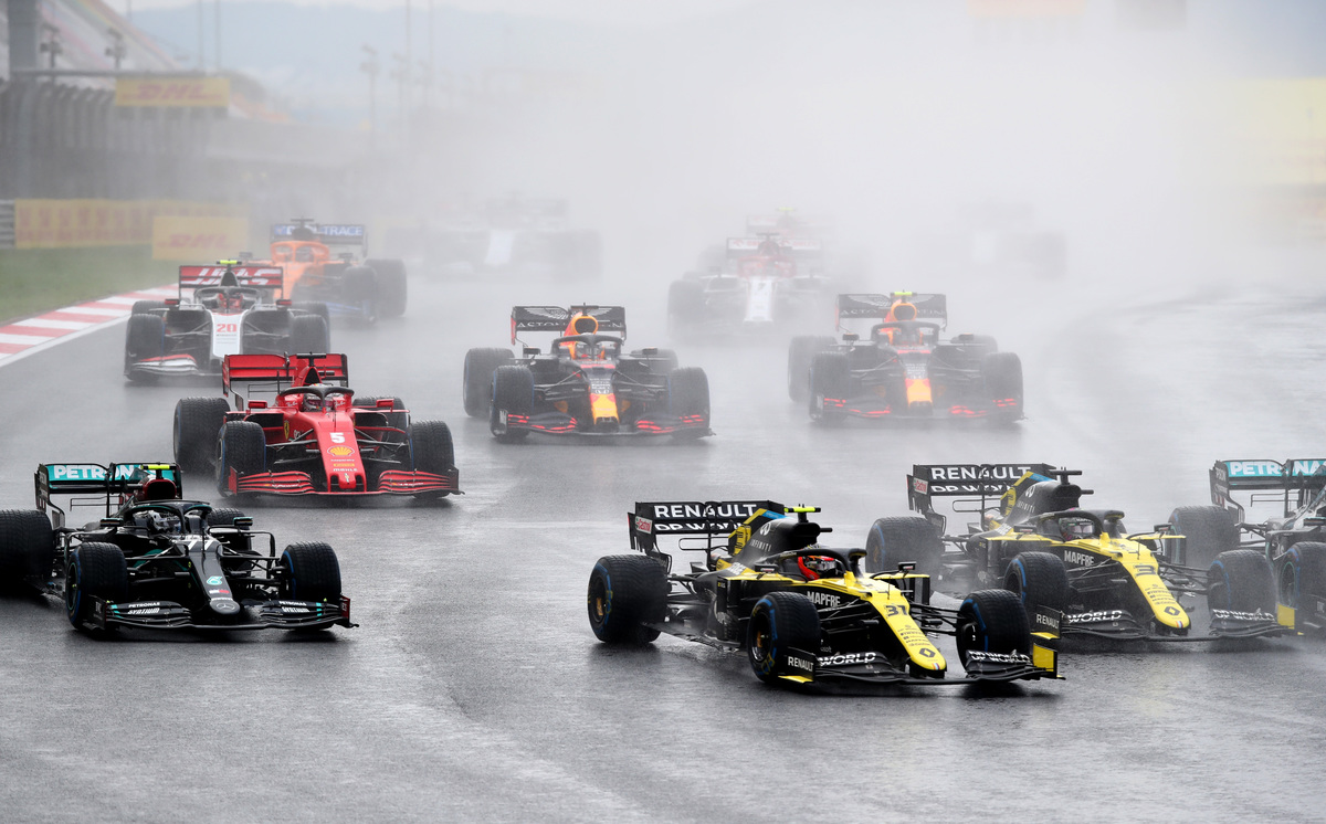 Formula One F1 - Turkish Grand Prix - Istanbul Park, Istanbul, Turkey - November 15, 2020 Mercedes' Valtteri Bottas, Renault's Esteban Ocon and Renault's Daniel Ricciardo in action at the start of the race REUTERS/Tolga Bozoglu