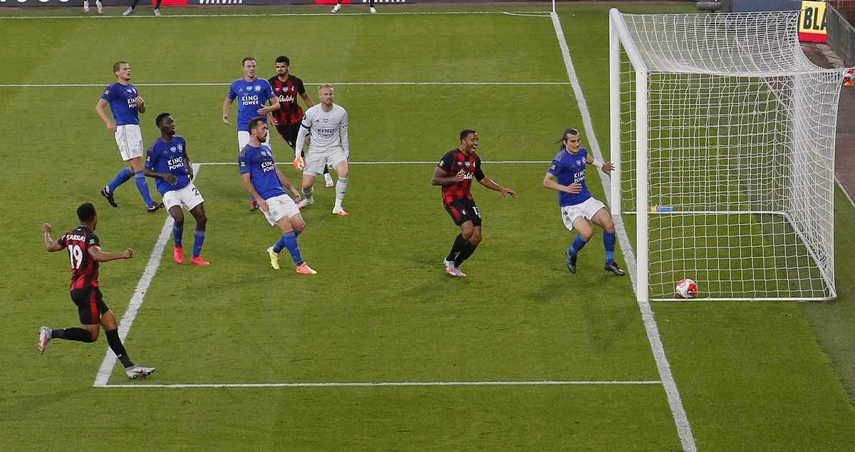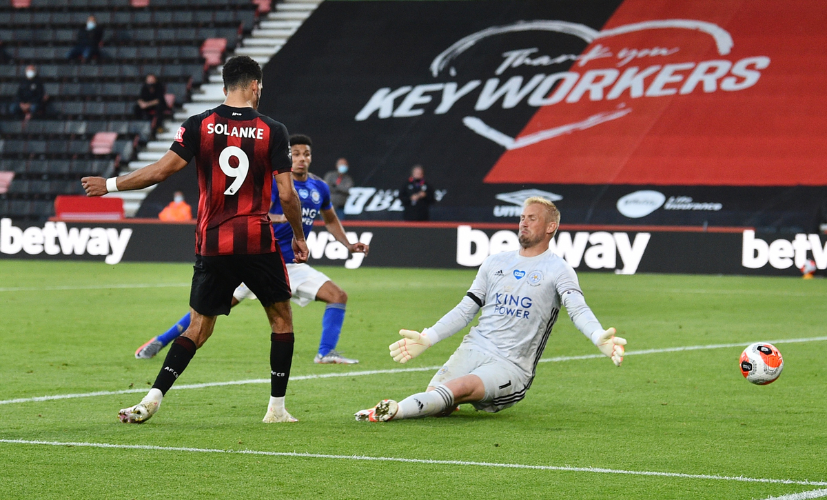 Junior Stanislas equalised from the penalty spot in the 66th minute after a mistake by Leicester keeper Kasper Schmeichel, who was at fault again one minute later when he allowed Solanke's shot to trickle over the line.