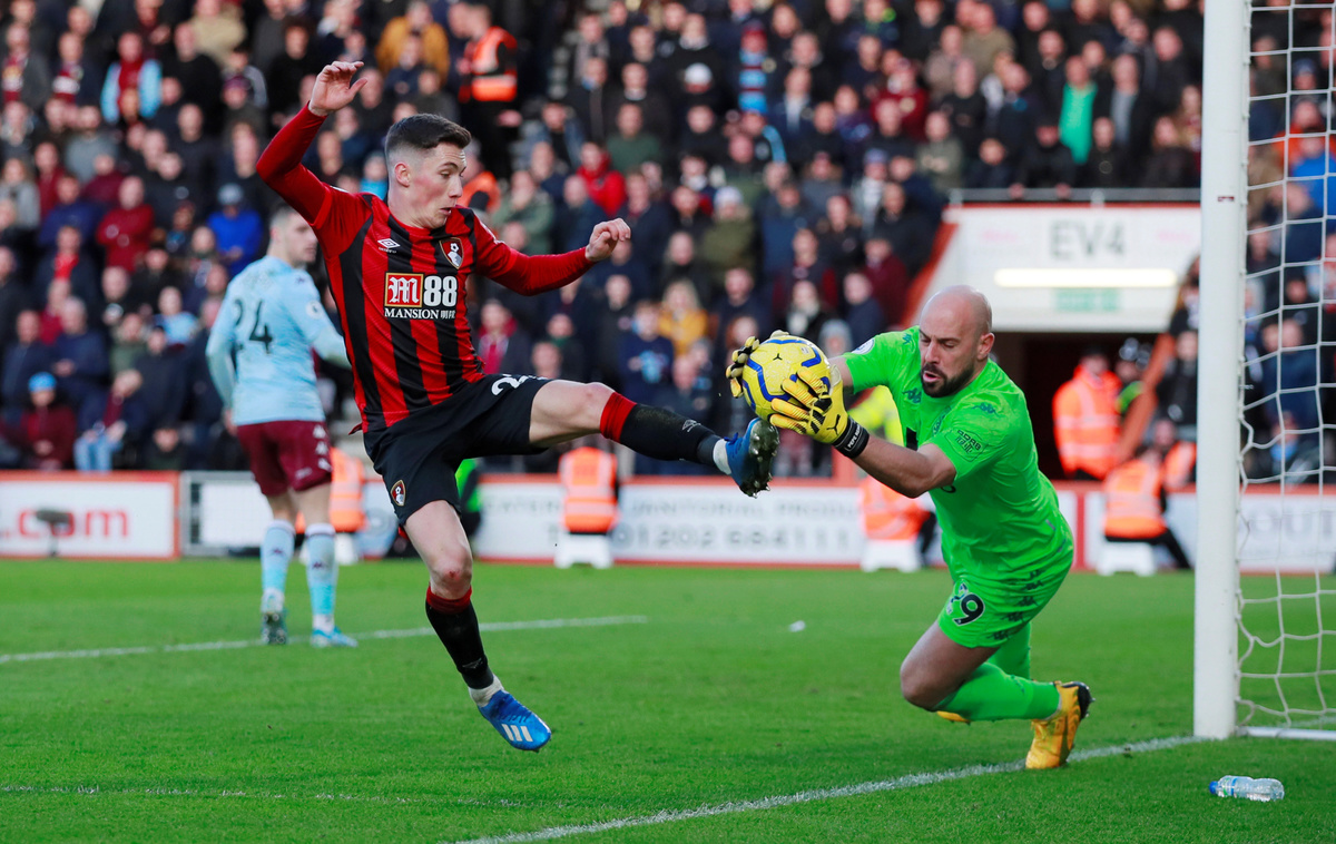 Bournemouth doubled their lead minutes before halftime after Ryan Fraser's initial shot was saved by Villa goalkeeper Pepe Reina, only for Nathan Ake to score from the rebound.