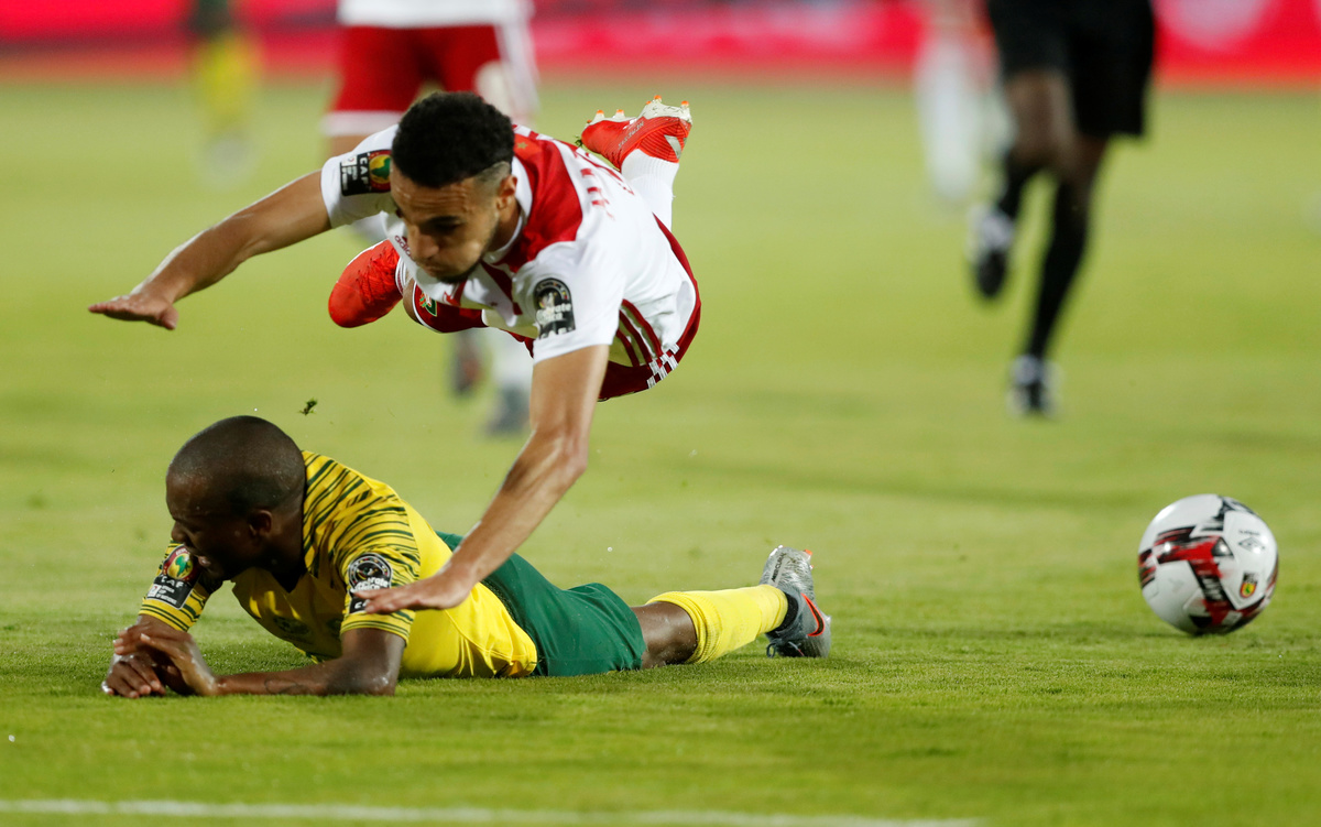 It took more than 30 minutes for the first real effort as Percy Tau’s shot for South Africa went narrowly wide.