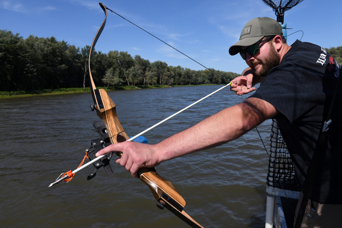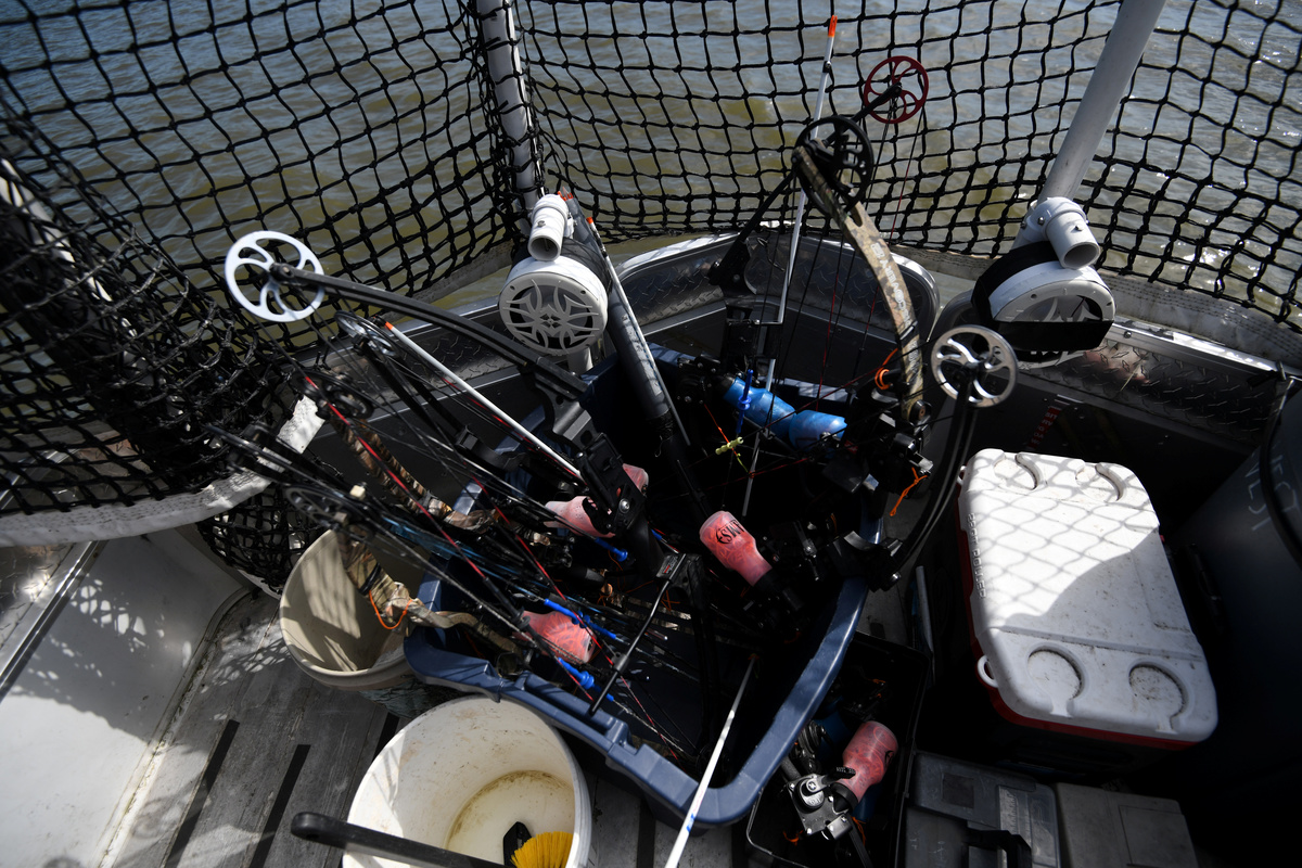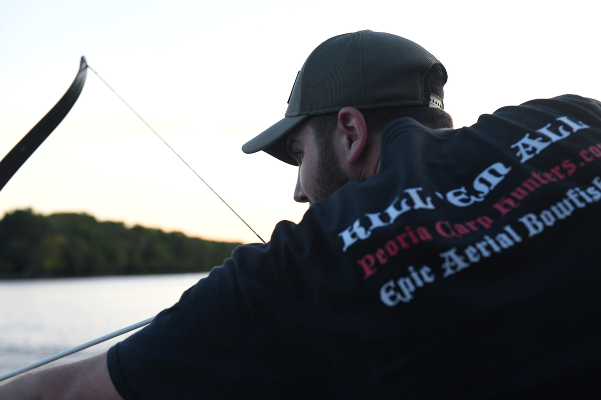 Wallick, 35, a professional firefighter with a love of hunting and angling, distinguishes this brand of "aerial bowfishing" from more traditional methods by which archers ply the river at night with spotlights, hunting for carp swimming beneath the surface.