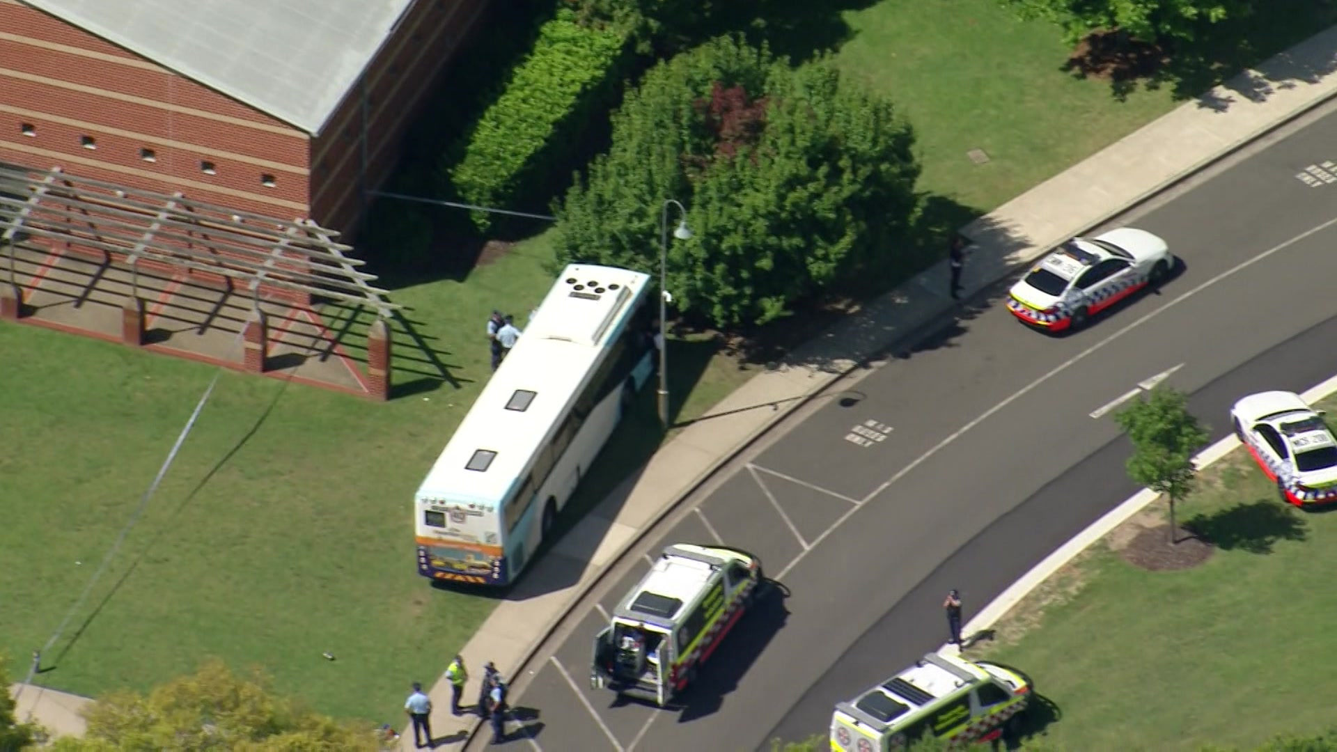 A 14-year-old boy has died after being hit by a bus outside a school in Sydney's south west.