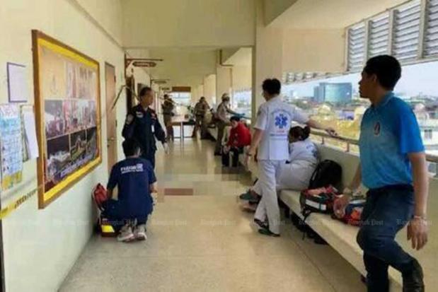 Emergency responders found Chonlasit Boonchan, also 13, a Mathayom Suksa 1 student, lying in a pool of blood in front of his classroom. He had a gunshot wound to the right side of his forehead.