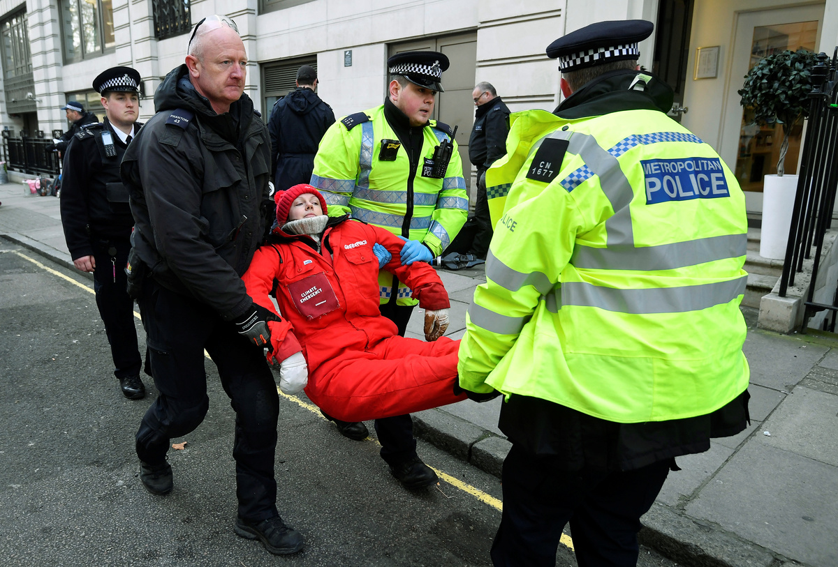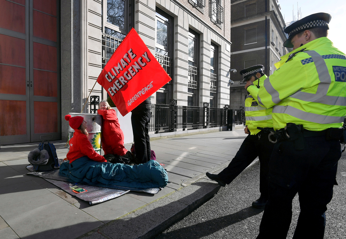 Climate protesters forced BP <BP.L> to temporarily shut down its London headquarters on Wednesday, the first day in office for the oil and gas company's new CEO Bernard Looney.