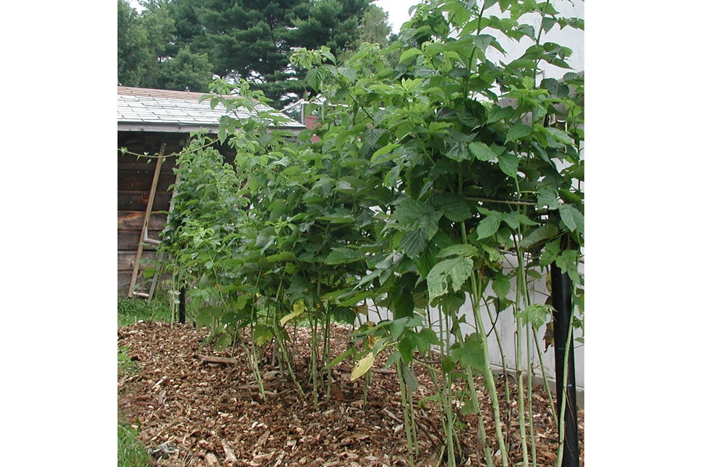 2. Next, cut down any new canes that look spindly or diseased, or are overcrowded. When you return to your planting in winter, continue this step, more aggressively, removing canes trying to escape the foot-wide hedgerow or their hill. Also, further reduce the number of canes in the row or at the hill to the healthiest-looking ones, 6 inches apart in hedgerows, or six canes per hill.
