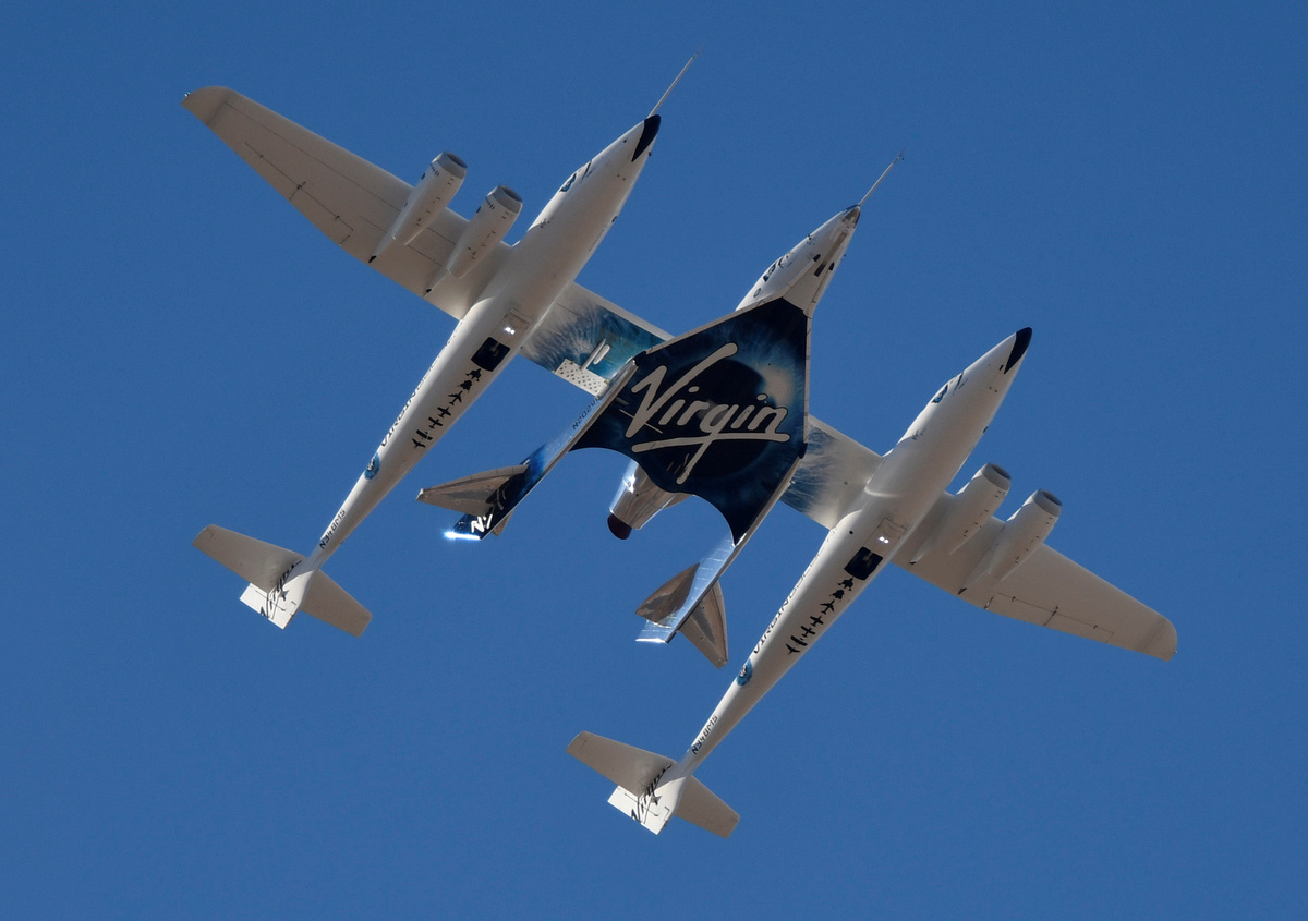 The suborbital spaceplane was carried to an altitude of roughly 44,000 feet (13,410 meters) by its twin-fuselage mothership dubbed White Knight 2. It detached from the carrier plane around 9:15 a.m. local time, but a live video stream appeared to show the engines firing only for a brief moment.