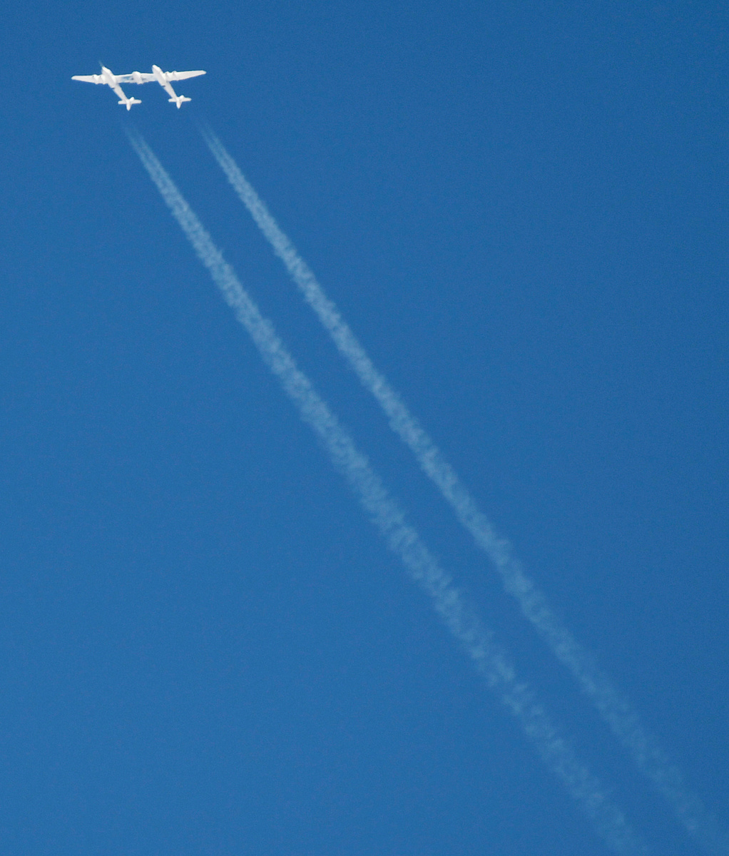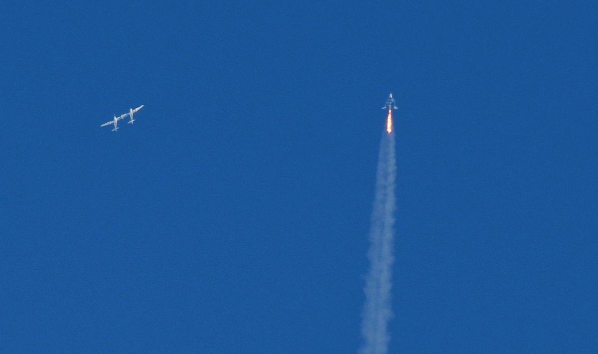The WhiteKnightTwo carrier airplane took off soon after 8 a.m. local time (11 a.m. ET) from the Mojave Air and Space Port in California. It released the SpaceShipTwo passenger craft at an altitude of about 44,000 feet and then the spaceship was catapulted to 55 miles above Earth.