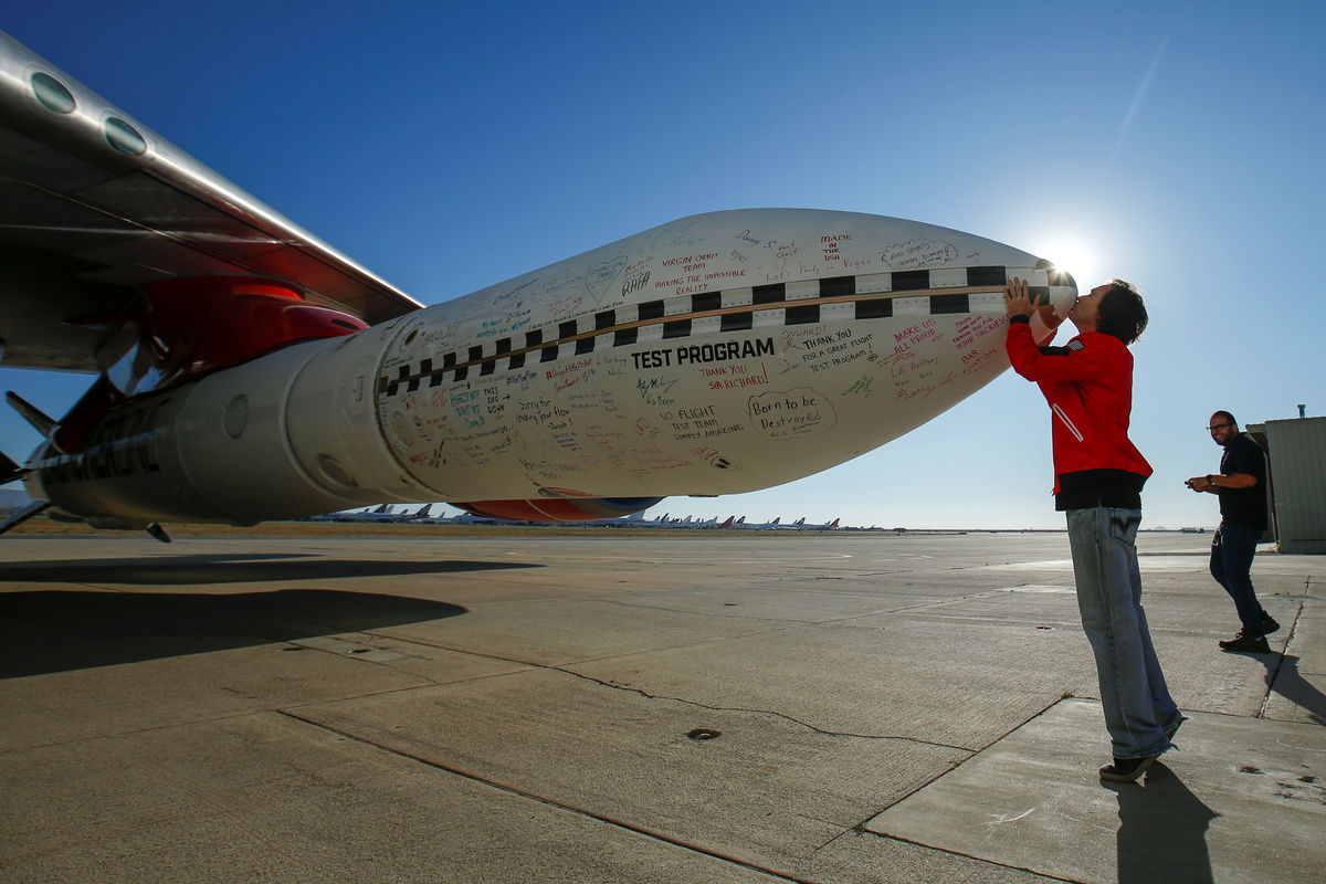 The rocket, loaded with water and antifreeze to simulate the weight of fuel, crashed as planned into the Mojave Desert as the jetliner, nicknamed Cosmic Girl, continued on its flight path.
