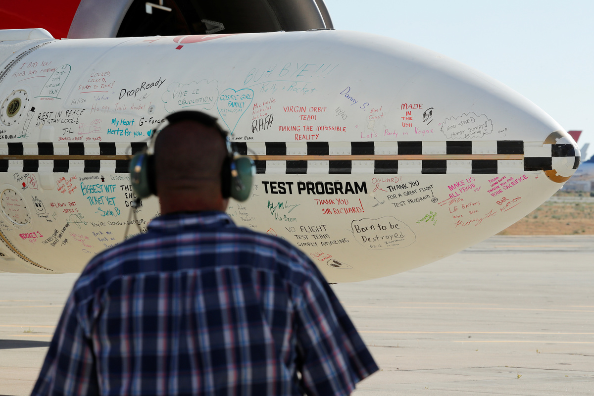 Richard Branson's Virgin Orbit, with a rocket underneath the wing of a modified Boeing 747 jetliner, takes off to for a key drop test of its high-altitude launch system for satellites from Mojave, California, U.S. July 10, 2019. REUTERS/Mike BlakeRichard Branson's Virgin Orbit, with a rocket underneath the wing of a modified Boeing 747 jetliner, prior to its takeoff on a key drop test of its high-altitude launch system for satellites from Mojave, California, U.S. July 10, 2019. REUTERS/Mike BlakeVirgin Orbit CEO Dan Hart looks at a rocket underneath the wing of a modified Boeing 747 jetliner prior to a drop test of its high-altitude launch system for satellites from Mojave, California, U.S. July 10, 2019. REUTERS/Mike BlakeRichard Branson's Virgin Orbit, with a rocket underneath the wing of a modified Boeing 747 jetliner, prior to its takeoff on a key drop test of its high-altitude launch system for satellites from Mojave, California, U.S. July 10, 2019. REUTERS/Mike BlakeVirgin Orbit CEO Dan Hart walks past a rocket underneath the wing of a modified Boeing 747 jetliner prior to a drop test of its high-altitude launch system for satellites from Mojave, California, U.S. July 10, 2019. REUTERS/Mike BlakeRichard Branson's Virgin Orbit, with a rocket underneath the wing of a modified Boeing 747 jetliner, takes off to for a key drop test of its high-altitude launch system for satellites from Mojave, California, U.S. July 10, 2019. REUTERS/Mike BlakeRichard Branson's Virgin Orbit, prior to its takeoff on a key drop test of its high-altitude launch system for satellites from Mojave, California, U.S. July 10, 2019. REUTERS/Mike BlakeRichard Branson's Virgin Orbit, with a rocket underneath the wing of a modified Boeing 747 jetliner, takes off to for a key drop test of its high-altitude launch system for satellites from Mojave, California, U.S. July 10, 2019. REUTERS/Mike BlakeFILE PHOTO: Sir Richard Branson attends the "Venezuela Aid Live" concert near the Tienditas cross-border bridge between Colombia and Venezuela, in Cucuta, Colombia, February 22, 2019. REUTERS/Luisa GonzalezRichard Branson's Virgin Orbit, with a rocket underneath the wing of a modified Boeing 747 jetliner, takes off to for a key drop test of its high-altitude launch system for satellites from Mojave, California, U.S. July 10, 2019. REUTERS/Mike Blake