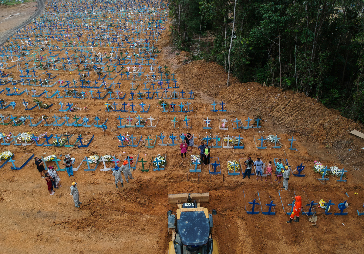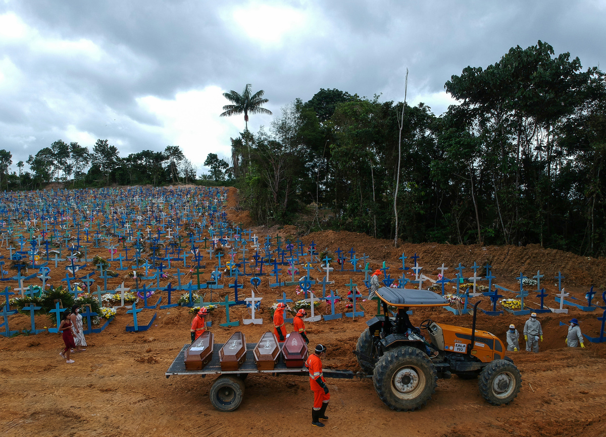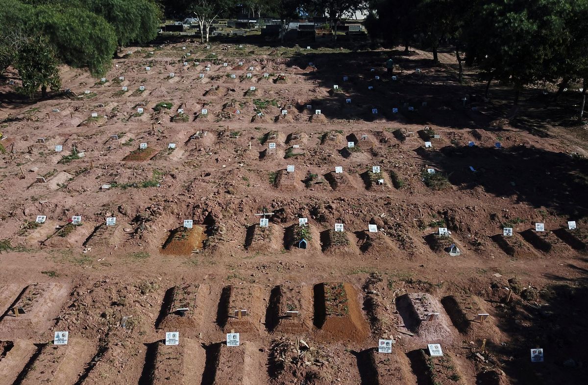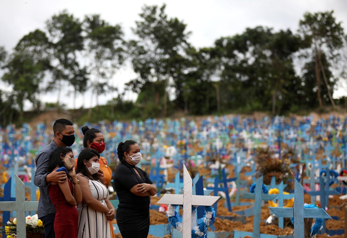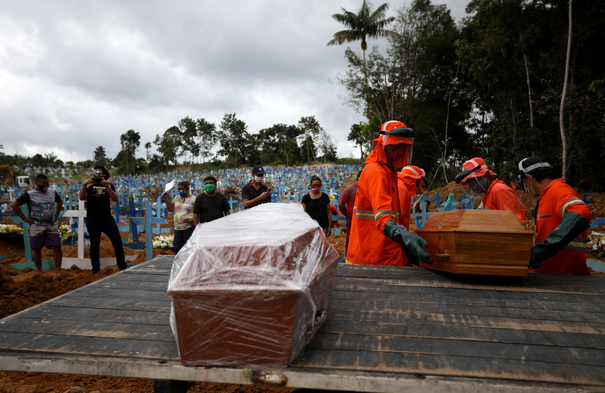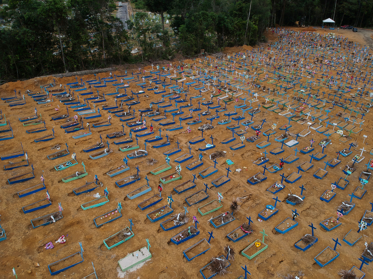 Gravediggers work during a mass burial of people who passed away due to the coronavirus disease (COVID-19), at the Parque Taruma cemetery in Manaus, Brazil, May 26, 2020. REUTERS/Bruno KellyRelatives are seen during a mass burial of people who passed away due to the coronavirus disease (COVID-19), at the Parque Taruma cemetery in Manaus, Brazil, May 26, 2020. REUTERS/Bruno KellyA woman reacts during a mass burial of people who passed away due to the coronavirus disease (COVID-19), at the Parque Taruma cemetery in Manaus, Brazil, May 26, 2020. REUTERS/Bruno KellyA view of the Parque Taruma cemetery during the coronavirus disease (COVID-19) outbreak, in Manaus, Brazil, May 26, 2020. Picture taken with a drone. REUTERS/Bruno KellyGraves are seen at Nova Cachoeirinha cemetery during the outbreak of the coronavirus disease (COVID-19) in Sao Paulo, Brazil May 26, 2020. Picture taken with a drone. REUTERS/Amanda PerobelliGraves are seen at Nova Cachoeirinha cemetery during the outbreak of the coronavirus disease (COVID-19) in Sao Paulo, Brazil May 26, 2020. Picture taken with a drone. REUTERS/Amanda Perobelli