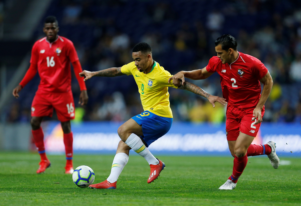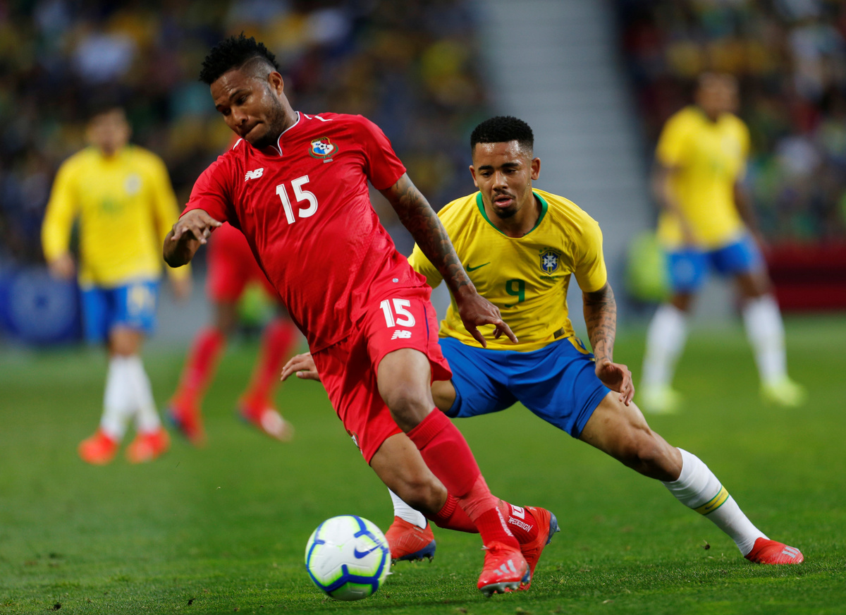 Soccer Football - International Friendly - Brazil v Panama - Estadio do Dragao, Porto, Portugal - March 23, 2019 Panama's Erick Davis in action with Brazil's Gabriel Jesus REUTERS/Pedro Nunes