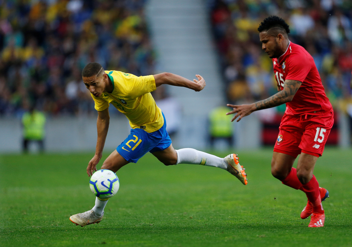 Soccer Football - International Friendly - Brazil v Panama - Estadio do Dragao, Porto, Portugal - March 23, 2019 Brazil's Richarlison in action with Panama's Erick Davis REUTERS/Pedro NunesSoccer Football - International Friendly - Brazil v Panama - Estadio do Dragao, Porto, Portugal - March 23, 2019 Panama's Luis Mejia in action with Brazil's Richarlison REUTERS/Pedro NunesSoccer Football - International Friendly - Brazil v Panama - Estadio do Dragao, Porto, Portugal - March 23, 2019 Brazil's Fagner in action with Panama's Jose Luis Rodriguez REUTERS/Pedro Nunes