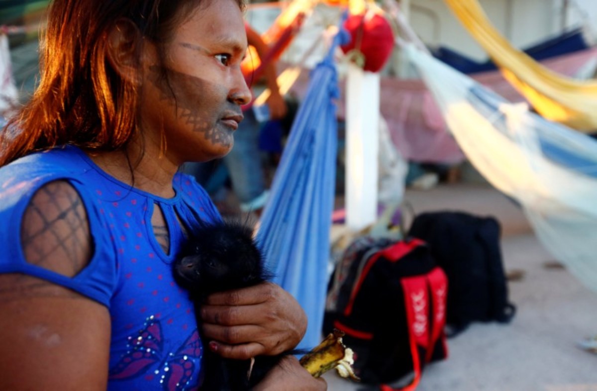 FILE PHOTO: A member of indigenous Munduruku tribe holds a monkey as she occupies the construction site of the hydropower plant of Sao Manoel, near the Teles Pires river, in the Alta Floresta city, in the north of the state of Mato Grosso in the Amazon, Brazil July 16, 2017. REUTERS /Lunae Parracho