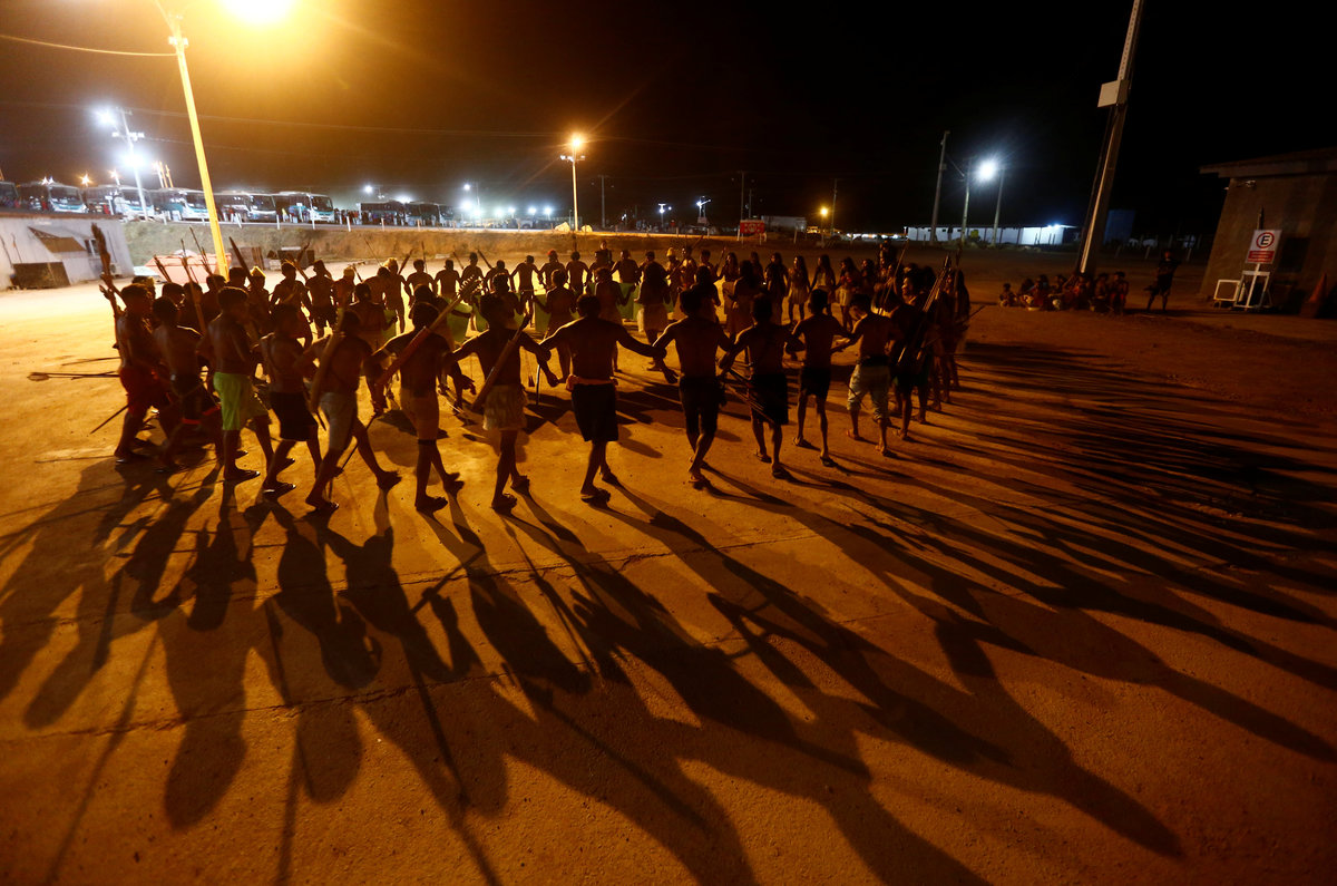 FILE PHOTO: Indigenous people of the Munduruku tribe are seen as they occupy the construction site of the hydropower plant of Sao Manoel, near the Teles Pires river, in the Alta Floresta city, in the north of the state of Mato Grosso in the Amazon, Brazil July 16, 2017. REUTERS /Lunae Parracho