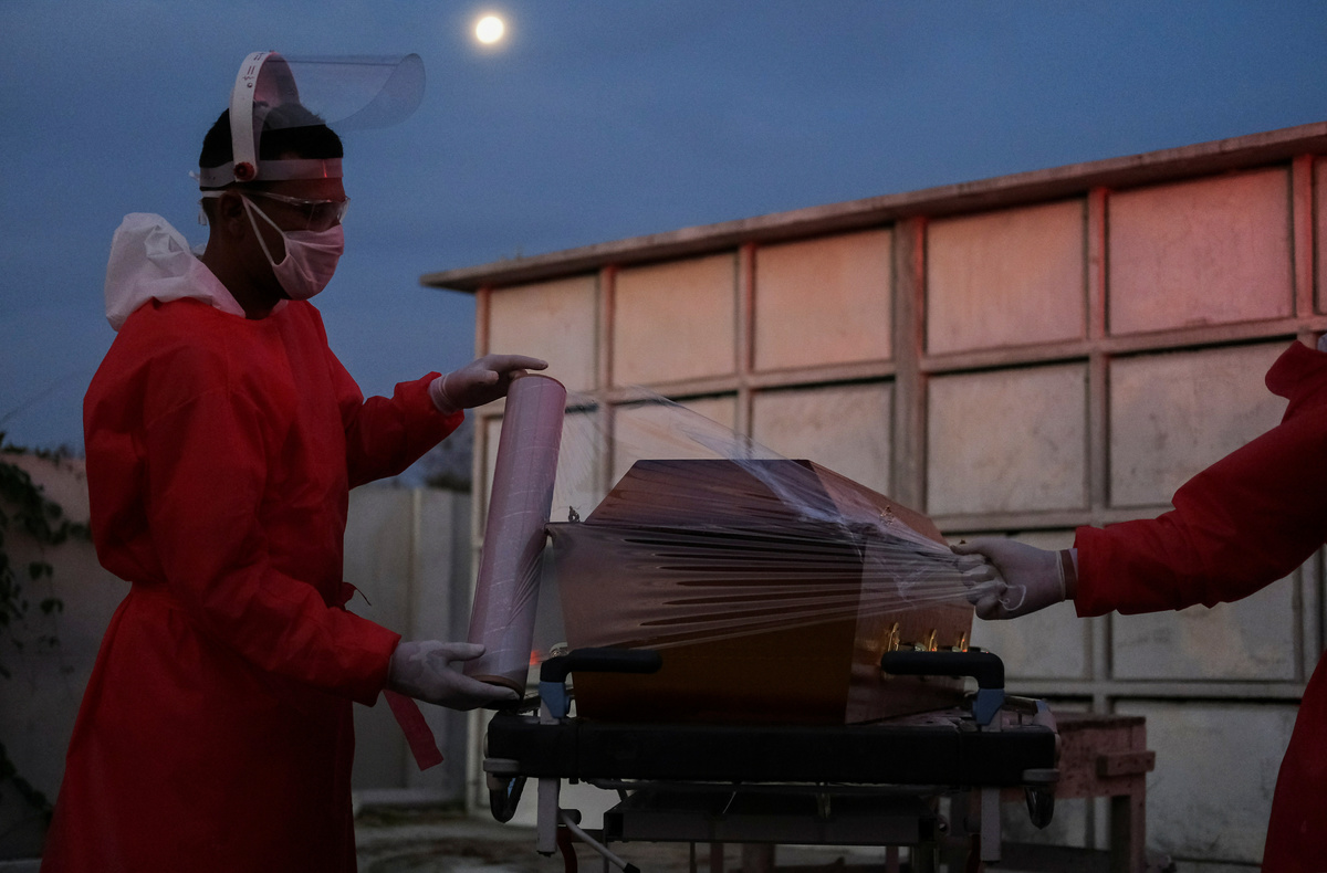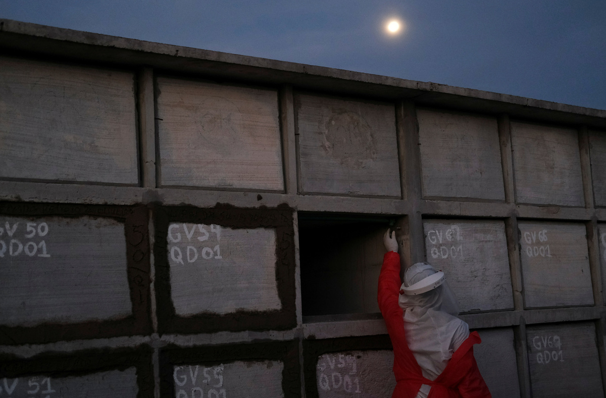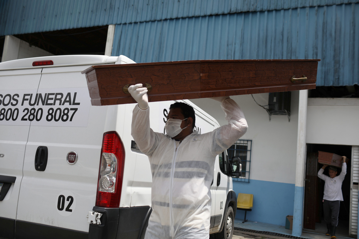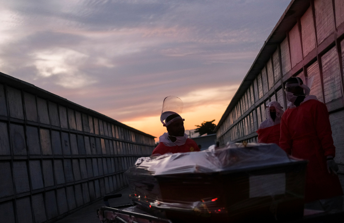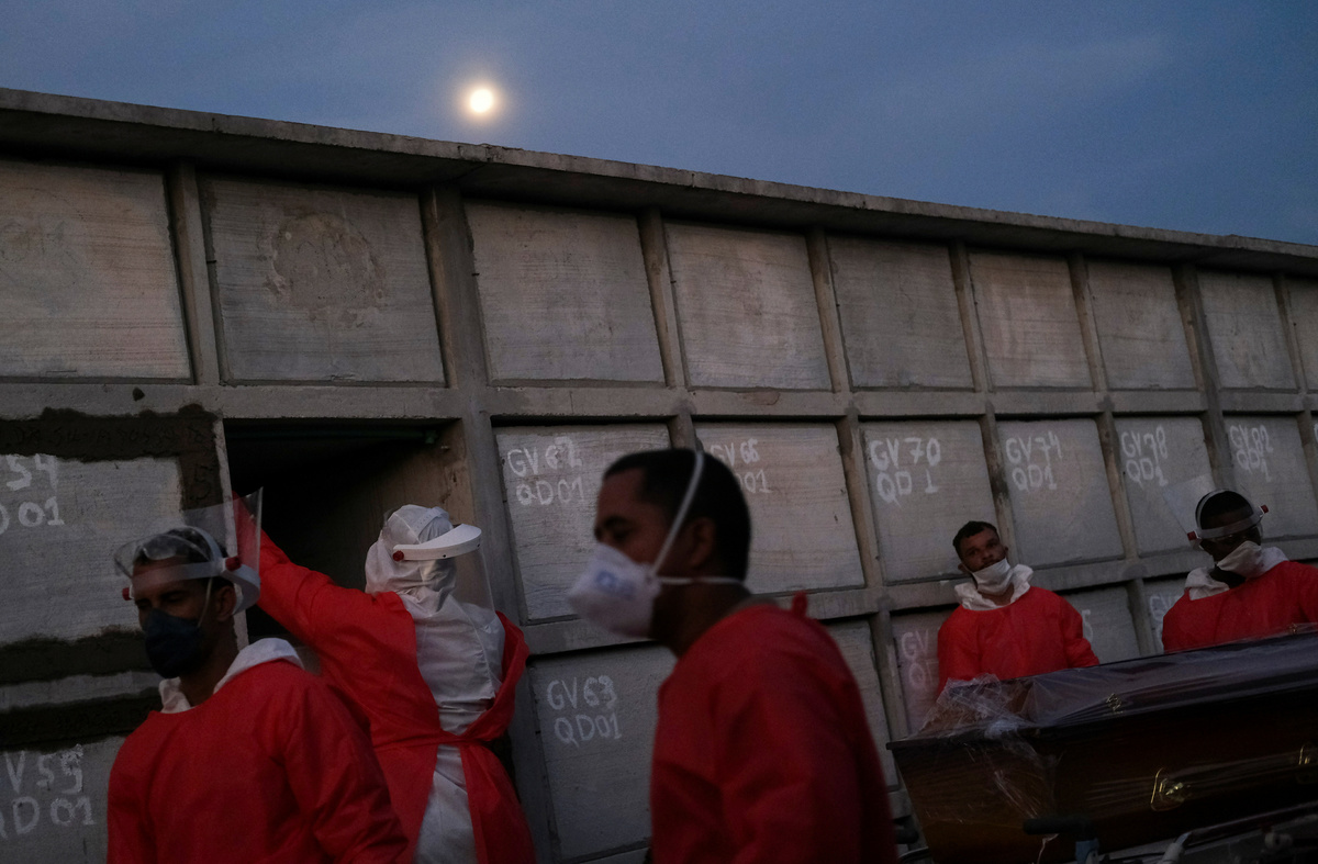 A gravedigger prepares the niche for the coffin of Antonio Marciano, 65, who is suspected to have passed away from the coronavirus disease (COVID-19), at Duque de Caxias public cemetery, near Rio de Janeiro, Brazil May 5, 2020. REUTERS/Ricardo MoraesGravediggers prepare the coffin of a person who is suspected to have passed away from the coronavirus disease (COVID-19), at Duque de Caxias public cemetery, near Rio de Janeiro, Brazil May 5, 2020. REUTERS/Ricardo MoraesA gravedigger waits for a burial at Duque de Caxias public cemetery, amid the coronavirus disease (COVID-19) outbreak, in Duque de Caxias, near Rio de Janeiro, Brazil May 5, 2020. REUTERS/Ricardo MoraesGravediggers push the coffin of a person who is suspected to have passed away from the coronavirus disease (COVID-19), at Duque de Caxias public cemetery, near Rio de Janeiro, Brazil May 5, 2020. REUTERS/Ricardo MoraesGravediggers prepare the coffin of a person who is suspected to have passed away from the coronavirus disease (COVID-19), at Duque de Caxias public cemetery, near Rio de Janeiro, Brazil May 5, 2020. REUTERS/Ricardo MoraesA gravedigger closes the niche where remains the coffin of Antonio Marciano, 65, who is suspected to have passed away from the coronavirus disease (COVID-19), at Duque de Caxias public cemetery, near Rio de Janeiro, Brazil May 5, 2020. REUTERS/Ricardo MoraesFILE PHOTO: Workers of the SOS Funeral, carry coffins amid the coronavirus disease (COVID-19) outbreak, in Manaus, Brazil, May 5, 2020. REUTERS/Bruno Kelly