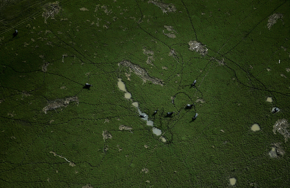 Buffalos are pictured at a flooded farm near the mouth of Araguari River where the river joins the Atlantic Ocean on the coast of Amapa state near Amapa city, northern Brazil, March 31, 2017. Picture taken on March 31, 2017. REUTERS/Ricardo Moraes