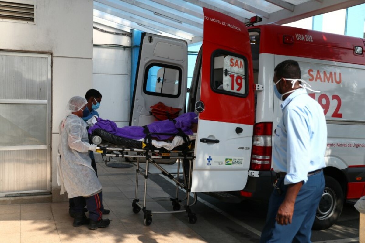 FILE PHOTO: A patient with suspected COVID-19 infection arrives at the Sao Jose hospital in the Emergency Mobile Care Service (SAMU) ambulance, amid the coronavirus disease (COVID-19) outbreak, in Duque de Caxias near Rio de Janeiro, Brazil May 20, 2021. REUTERS/Pilar Olivares