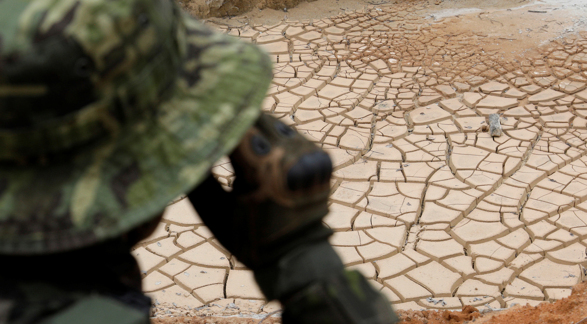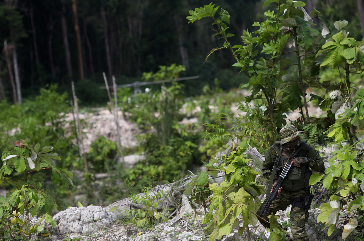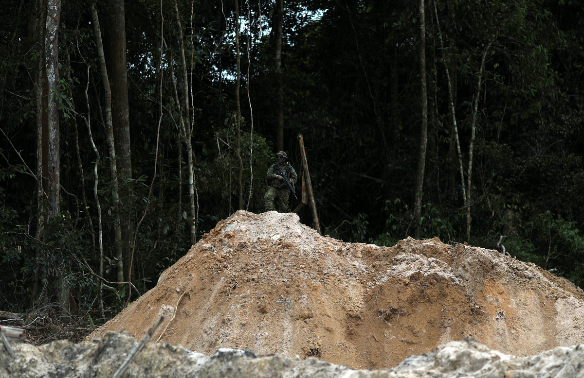 An Ibama specialised inspector takes a position at an illegal gold mine during an operation conducted by agents of the Brazilian Institute for the Environment and Renewable Natural Resources, or Ibama, in national parks near Novo Progresso, southeast of Para state, Brazil, November 5, 2018. REUTERS/Ricardo Moraes