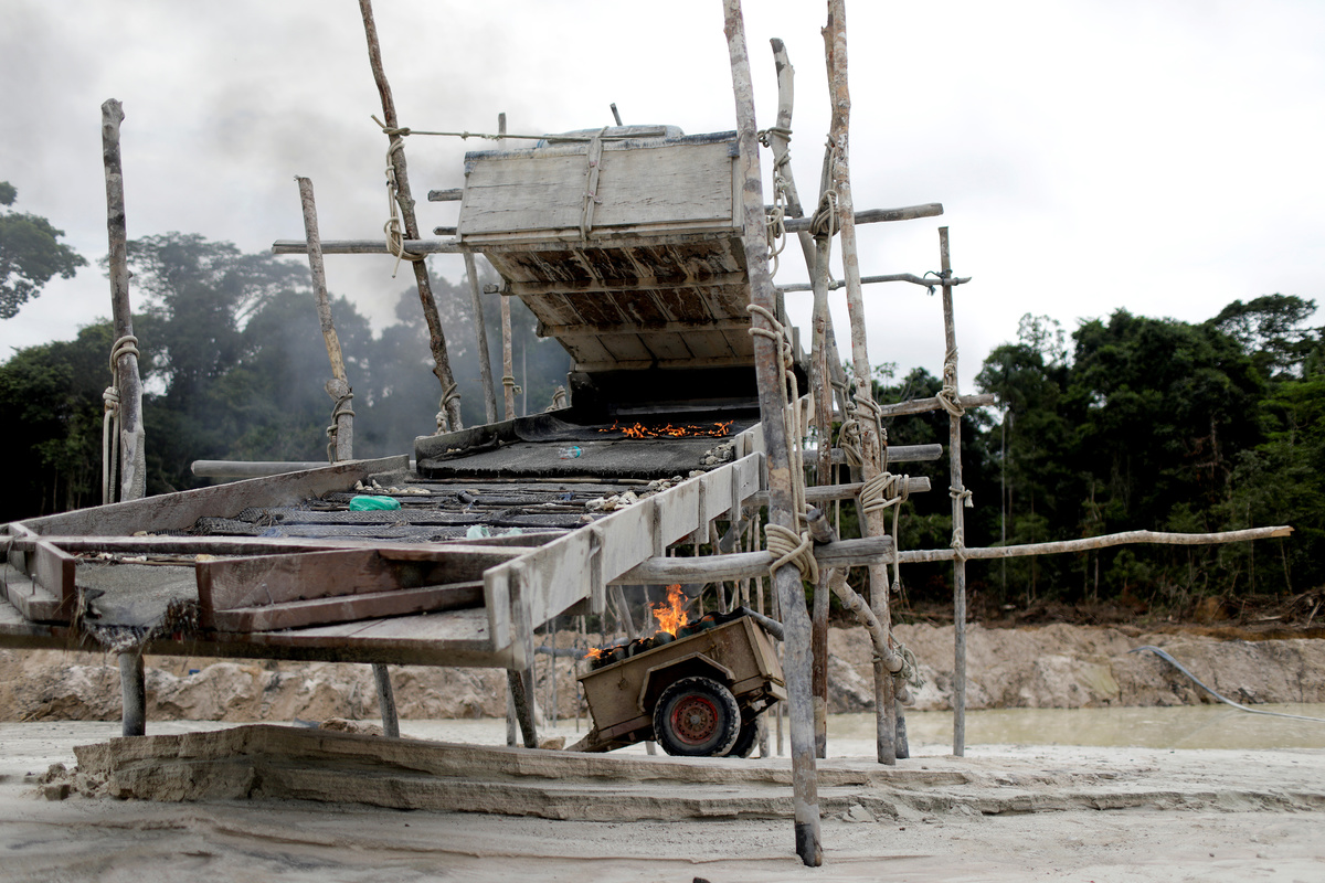 A miners' camp is seen at an illegal gold mine during an operation conducted by agents of the Brazilian Institute for the Environment and Renewable Natural Resources, or Ibama, in national parks near Novo Progresso, southeast of Para state, Brazil, November 5, 2018. REUTERS/Ricardo MoraesMachines are destroyed at an illegal cassiterite mine during an operation conducted by agents of the Brazilian Institute for the Environment and Renewable Natural Resources, or Ibama, in national parks near Novo Progresso, southeast of Para state, Brazil, November 4, 2018. REUTERS/Ricardo MoraesAn illegal gold mine is pictured during an operation conducted by agents of the Brazilian Institute for the Environment and Renewable Natural Resources, or Ibama, in national parks near Novo Progresso, southeast of Para state, Brazil, November 5, 2018. REUTERS/Ricardo MoraesA specialised inspector searches a miners' camp at an illegal gold mine during an operation conducted by agents of the Brazilian Institute for the Environment and Renewable Natural Resources, or Ibama, in national parks near Novo Progresso, southeast of Para state, Brazil, November 5, 2018. REUTERS/Ricardo MoraesA miners' camp is destroyed at an illegal gold mine during an operation conducted by agents of the Brazilian Institute for the Environment and Renewable Natural Resources, or Ibama, in national parks near Novo Progresso, southeast of Para state, Brazil, November 5, 2018. REUTERS/Ricardo MoraesAn improvised kitchen is seen at a miners' camp at an illegal gold mine during an operation conducted by agents of the Brazilian Institute for the Environment and Renewable Natural Resources, or Ibama, in national parks near Novo Progresso, southeast of Para state, Brazil, November 5, 2018. REUTERS/Ricardo MoraesMachines are destroyed at an illegal gold mine during an operation conducted by agents of the Brazilian Institute for the Environment and Renewable Natural Resources, or Ibama, in national parks near Novo Progresso, southeast of Para state, Brazil, November 5, 2018. REUTERS/Ricardo MoraesA policeman observes an illegal gold mine during an operation conducted by agents of the Brazilian Institute for the Environment and Renewable Natural Resources, or Ibama, in national parks near Novo Progresso, southeast of Para state, Brazil, November 4, 2018. REUTERS/Ricardo MoraesMachines are destroyed at an illegal cassiterite mine during an operation conducted by agents of the Brazilian Institute for the Environment and Renewable Natural Resources, or Ibama, in national parks near Novo Progresso, southeast of Para state, Brazil, November 4, 2018. REUTERS/Ricardo MoraesMiners are briefly detained and questioned at an illegal gold mine during an operation conducted by agents of the Brazilian Institute for the Environment and Renewable Natural Resources, or Ibama, in national parks near Novo Progresso, southeast of Para state, Brazil, November 5, 2018. REUTERS/Ricardo MoraesAn illegal cassiterite mine is seen during an operation conducted by agents of the Brazilian Institute for the Environment and Renewable Natural Resources, or Ibama, in national parks near Novo Progresso, southeast of Para state, Brazil, November 4, 2018. REUTERS/Ricardo MoraesAn illegal cassiterite mine is seen during an operation conducted by agents of the Brazilian Institute for the Environment and Renewable Natural Resources, or Ibama, in national parks near Novo Progresso, southeast of Para state, Brazil, November 4, 2018. REUTERS/Ricardo MoraesA specialised agent patrols an illegal cassiterite mine during an operation conducted by agents of the Brazilian Institute for the Environment and Renewable Natural Resources, or Ibama, in national parks near Novo Progresso, southeast of Para state, Brazil, November 4, 2018. REUTERS/Ricardo MoraesA specialised agent patrols an illegal cassiterite mine during an operation conducted by agents of the Brazilian Institute for the Environment and Renewable Natural Resources, or Ibama, in national parks near Novo Progresso, southeast of Para state, Brazil, November 4, 2018. REUTERS/Ricardo Moraes