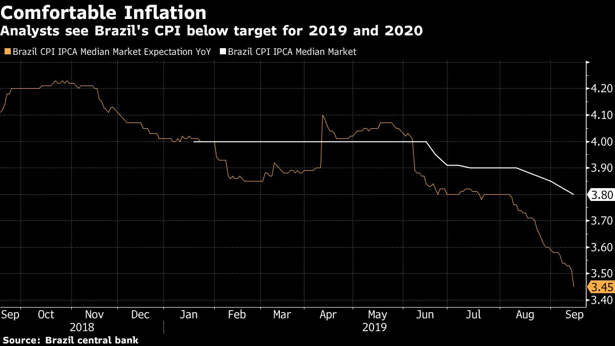 Brazil’s central bank, led by its President Roberto Campos Neto, is following peers from Europe to Chile who are boosting stimulus in the face of waning growth and tame inflation. Still, a sharp weakening of the local currency amid international trade tensions and, more recently, a spike in crude oil prices following an attack on Saudi fields have raised concerns that conditions for additional rate cuts may not remain in place for long. That uncertainty may prompt policy makers to keep their options open going forward.