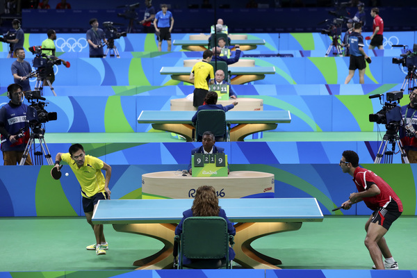 The largest crowd to gather Sunday packed Pavilion 3 for second- and third-round matches in table tennis.