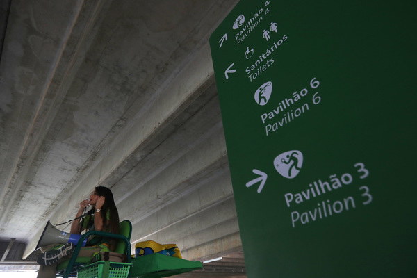 On Sunday, thousands descended on the 140-acre exhibition center and its six low-slung pavilions, which are laid out around a central, tree-lined courtyard, leaving Riocentro looking a bit like a small-college campus.