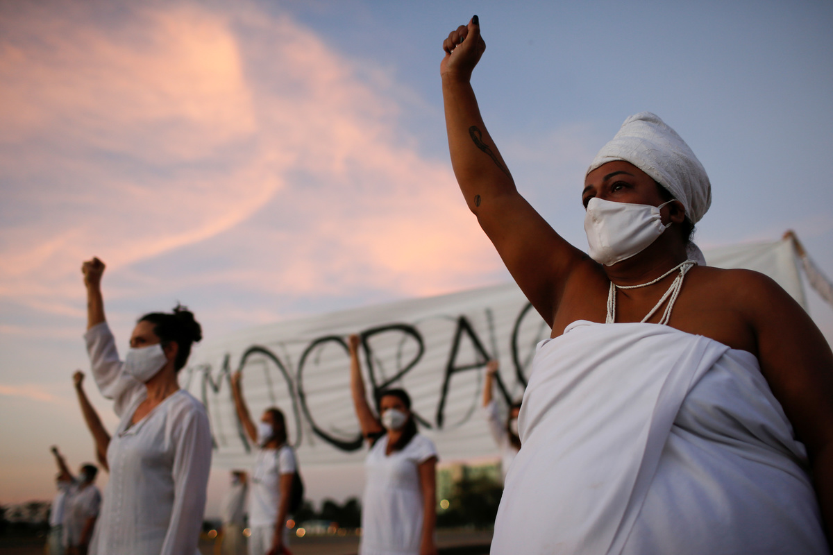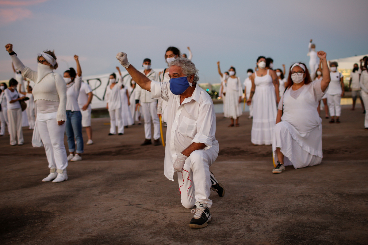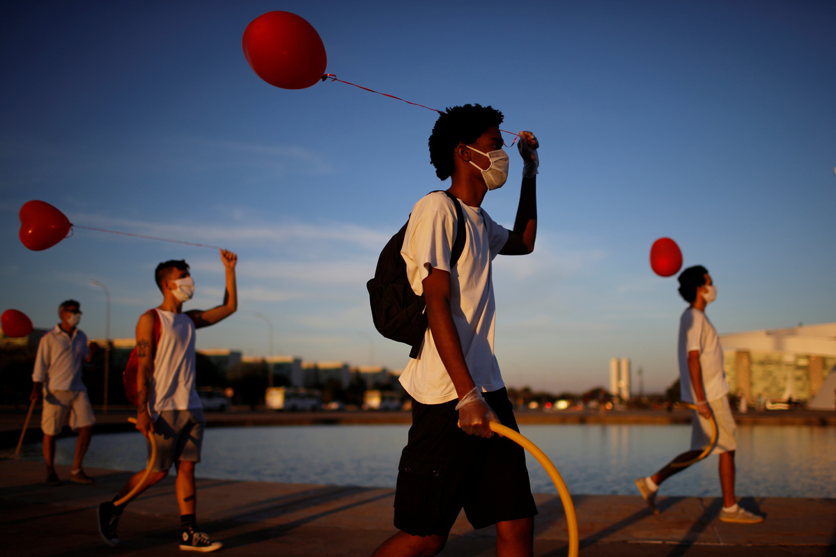 Artists perform during a protest to honour people who died from the coronavirus disease (COVID-19) during its outbreak in Brasilia, Brazil June 8, 2020. REUTERS/Adriano MachadoArtists kneel during a protest to honour people who died from the coronavirus disease (COVID-19) during its outbreak in Brasilia, Brazil June 8, 2020. REUTERS/Adriano MachadoArtists perform with during a protest to honour people who died from the coronavirus disease (COVID-19) during its outbreak in Brasilia, Brazil June 8, 2020. REUTERS/Adriano MachadoAn artist cries durning a protest to honour people who died from the coronavirus disease (COVID-19) during its outbreak in Brasilia, Brazil June 8, 2020. REUTERS/Adriano MachadoArtists perform with red balloons at a protest to honour people who died from the coronavirus disease (COVID-19) during its outbreak in Brasilia, Brazil June 8, 2020. REUTERS/Adriano MachadoArtists perform with red balloons at a protest to honour people who died from the coronavirus disease (COVID-19) during its outbreak in Brasilia, Brazil June 8, 2020. REUTERS/Adriano MachadoArtists perform with red balloons at a protest to honour people who died from the coronavirus disease (COVID-19) during its outbreak in Brasilia, Brazil June 8, 2020. REUTERS/Adriano MachadoAn artist spits fire during a protest to honour people who died from the coronavirus disease (COVID-19) during its outbreak in Brasilia, Brazil June 8, 2020. REUTERS/Adriano MachadoArtists perform with red balloons at a protest to honour people who died from the coronavirus disease (COVID-19) during its outbreak in Brasilia, Brazil June 8, 2020. REUTERS/Adriano MachadoAn artist spits fire during a protest to honour people who died from the coronavirus disease (COVID-19) during its outbreak in Brasilia, Brazil June 8, 2020. REUTERS/Adriano MachadoAn artist performs with red balloon and smoke at a protest to honour people who died from the coronavirus disease (COVID-19) during its outbreak in Brasilia, Brazil June 8, 2020. REUTERS/Adriano MachadoArtists perform with red balloons at a protest to honour people who died from the coronavirus disease (COVID-19) during its outbreak in Brasilia, Brazil June 8, 2020. REUTERS/Adriano MachadoAn artist performs during a protest to honour people who died from the coronavirus disease (COVID-19) during its outbreak in Brasilia, Brazil June 8, 2020. REUTERS/Adriano Machado