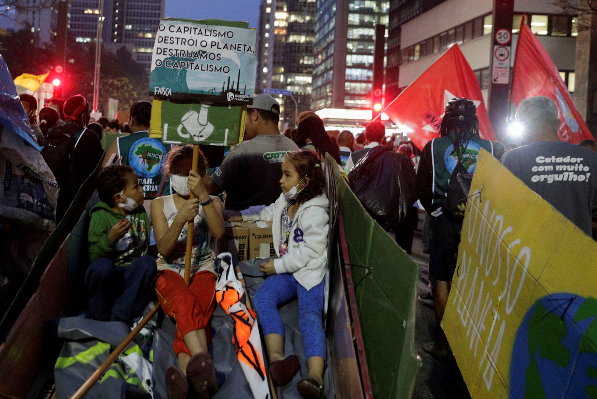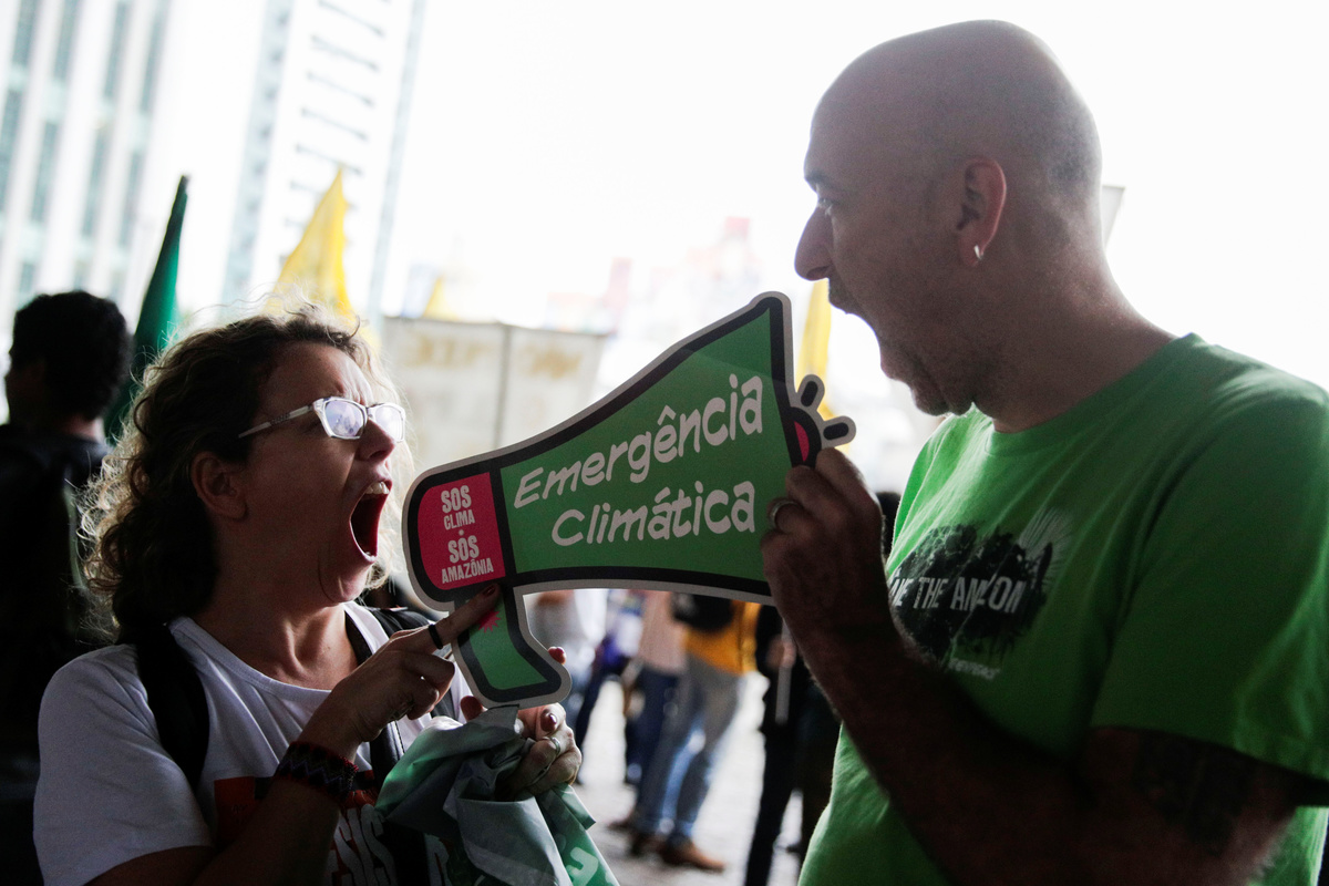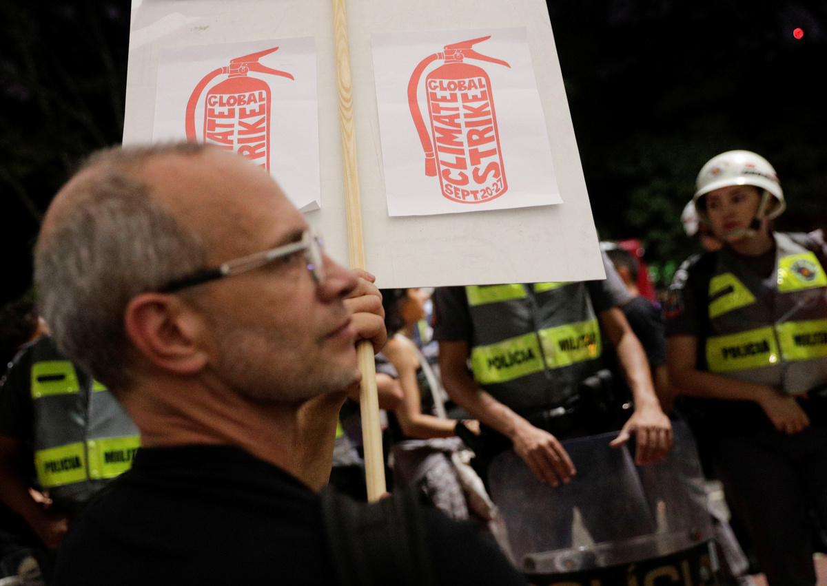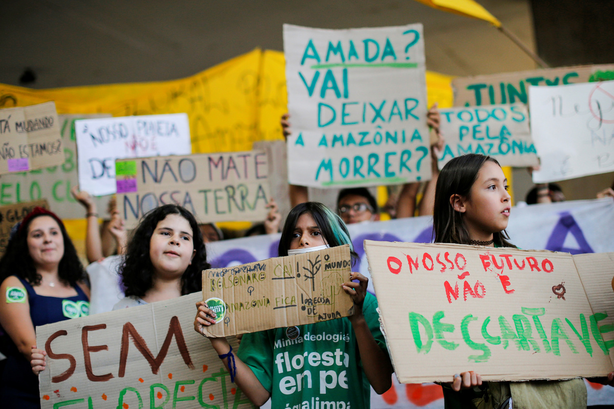A demonstrator takes part in the Global Climate Strike of the Fridays for Future movement in Brasilia, Brazil September 20, 2019. REUTERS/Adriano MachadoA demonstrator takes part in the Global Climate Strike of the Fridays for Future movement in Brasilia, Brazil September 20, 2019. REUTERS/Adriano MachadoDemonstrators take part in the Global Climate Strike of the Fridays for Future movement in Brasilia, Brazil September 20, 2019. REUTERS/Adriano MachadoA person holds an earth globe during the Global Climate Strike of the Fridays for Future movement in Sao Paulo, Brazil September 20, 2019. REUTERS/Nacho DoceKids hold placards as they take part in the Global Climate Strike of the Fridays for Future movement in Sao Paulo, Brazil September 20, 2019. REUTERS/Nacho Doce People hold placards as they take part in the Global Climate Strike of the Fridays for Future movement in Sao Paulo, Brazil September 20, 2019. REUTERS/Nacho Doce A man holds a banner during the Global Climate Strike of the Fridays for Future movement in Sao Paulo, Brazil September 20, 2019. REUTERS/Nacho Doce Children participate in the Global Climate Strike of the Fridays for Future movement in Sao Paulo, Brazil September 20, 2019. The placard reads: "Capitalism destroys the planet. Let's destroy capitalism." REUTERS/Nacho Doce People take part in the Global Climate Strike of the Fridays for Future movement in Sao Paulo, Brazil September 20, 2019. The placard reads: " Climate Emergency." REUTERS/Nacho Doce A person holds a banner during the Global Climate Strike of the Fridays for Future movement in Sao Paulo, Brazil September 20, 2019. The placard reads: " For Amazonia, for climate, for life." REUTERS/Nacho Doce People hold placards that read "How many lives is it worth?" and "Veganism saves" as they participate in a Global Climate Strike rally in Rio de Janeiro, Brazil September 20, 2019. REUTERS/Pilar OlivaresA woman looks on as she attends a Global Climate Strike rally in Rio de Janeiro, Brazil September 20, 2019. REUTERS/Pilar OlivaresA woman holds a placard during the Global Climate Strike rally in Rio de Janeiro, Brazil September 20, 2019. REUTERS/Pilar OlivaresA person holds a placard reading "Global strike for the climate" during the Global Climate Strike of the Fridays for Future movement in Sao Paulo, Brazil September 20, 2019. REUTERS/Nacho Doce A child with painted face participates in the Global Climate Strike of the Fridays for Future movement in Sao Paulo, Brazil September 20, 2019. REUTERS/Nacho DoceA kid stands next to a placard that reads "There's no Planet B" during a Global Climate Strike rally in Rio de Janeiro, Brazil September 20, 2019. REUTERS/Pilar Olivares